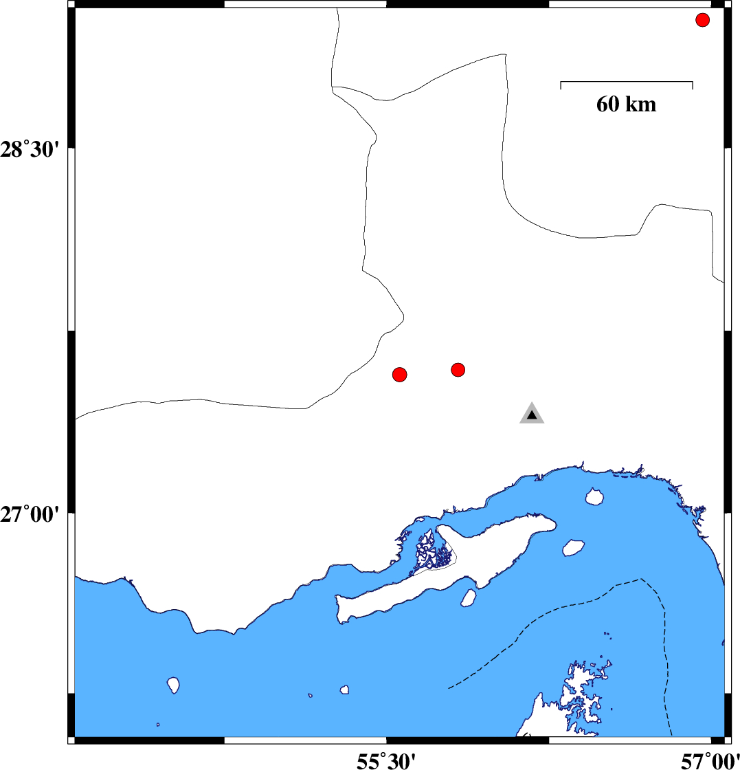 | 2007/12/17 | 16:23:54.8 | 19:53:54.8 | 27.57 | 55.56 | 15 | ML:2.9 | 83 km North-West of Bandar-e abbas, Hormozgan Province | ||