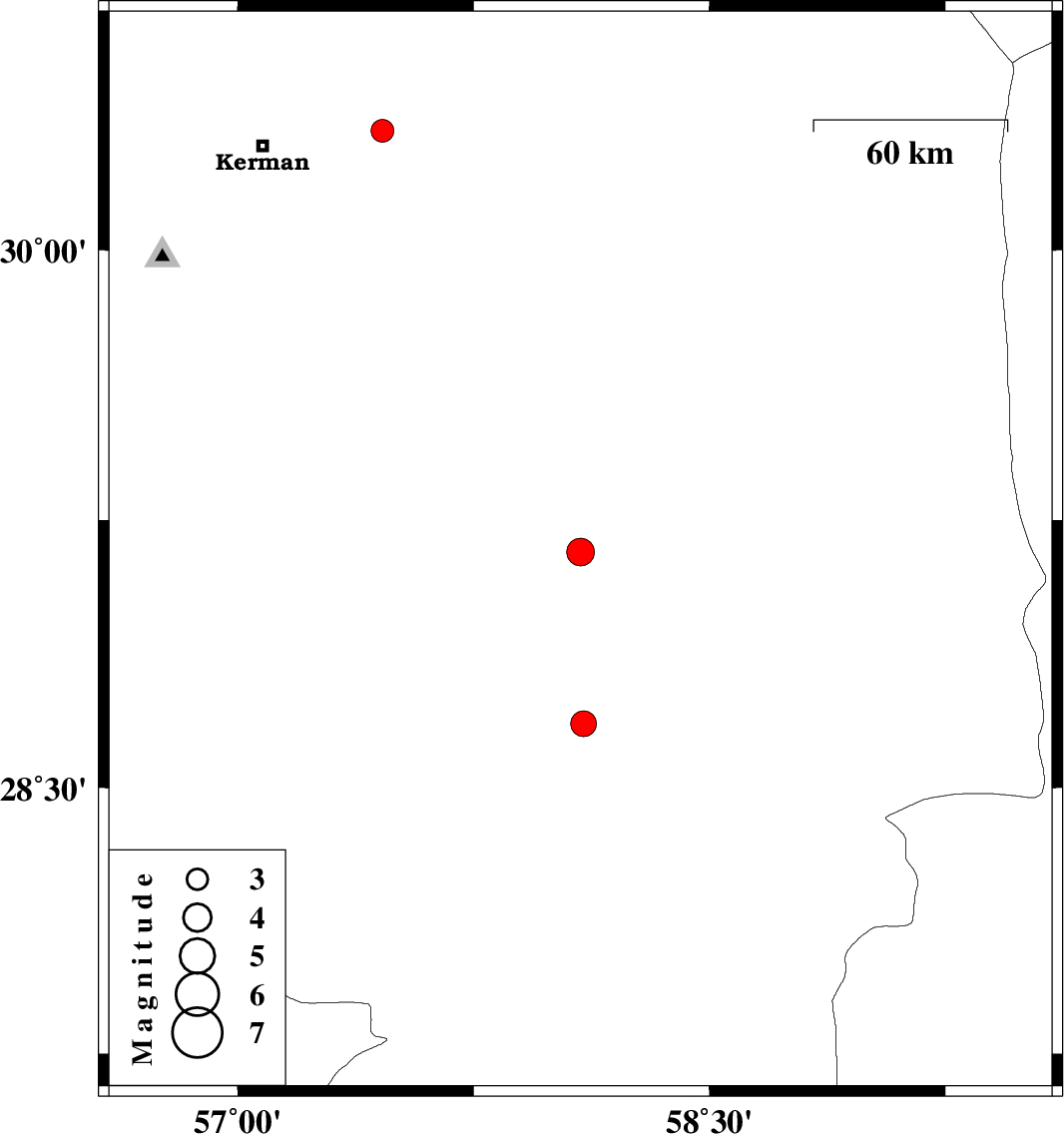 | 2007/12/22 | 10:04:39.7 | 13:34:39.7 | 28.68 | 58.1 | 14 | ML:3.6 | 35 km East of Jiroft, Kerman Province | ||