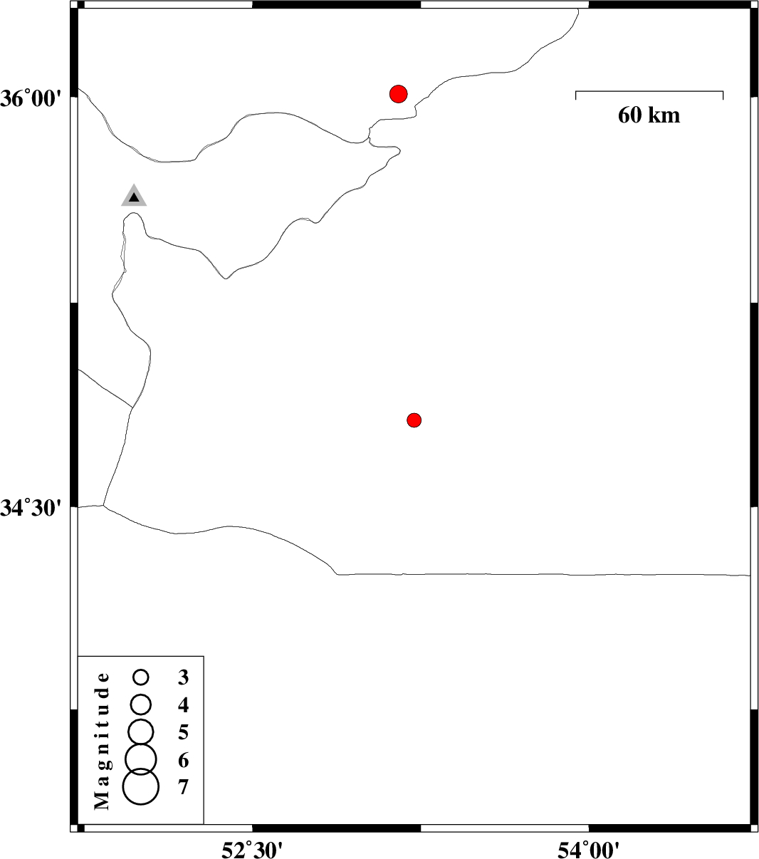 | 2008/01/07 | 23:18:19.3 | 02:48:19.3 | 34.82 | 53.22 | 15 | ML:2.8 | 84 km South-West of Semnan, Semnan Province | ||