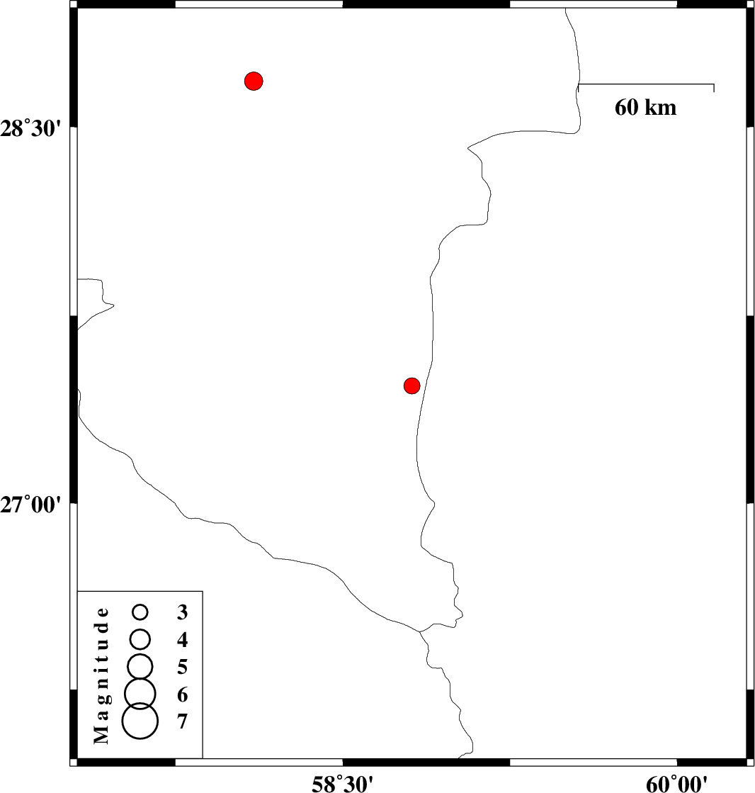 | 2007/12/22 | 10:04:39.7 | 13:34:39.7 | 28.68 | 58.1 | 14 | ML:3.6 | 35 km East of Jiroft, Kerman Province |
