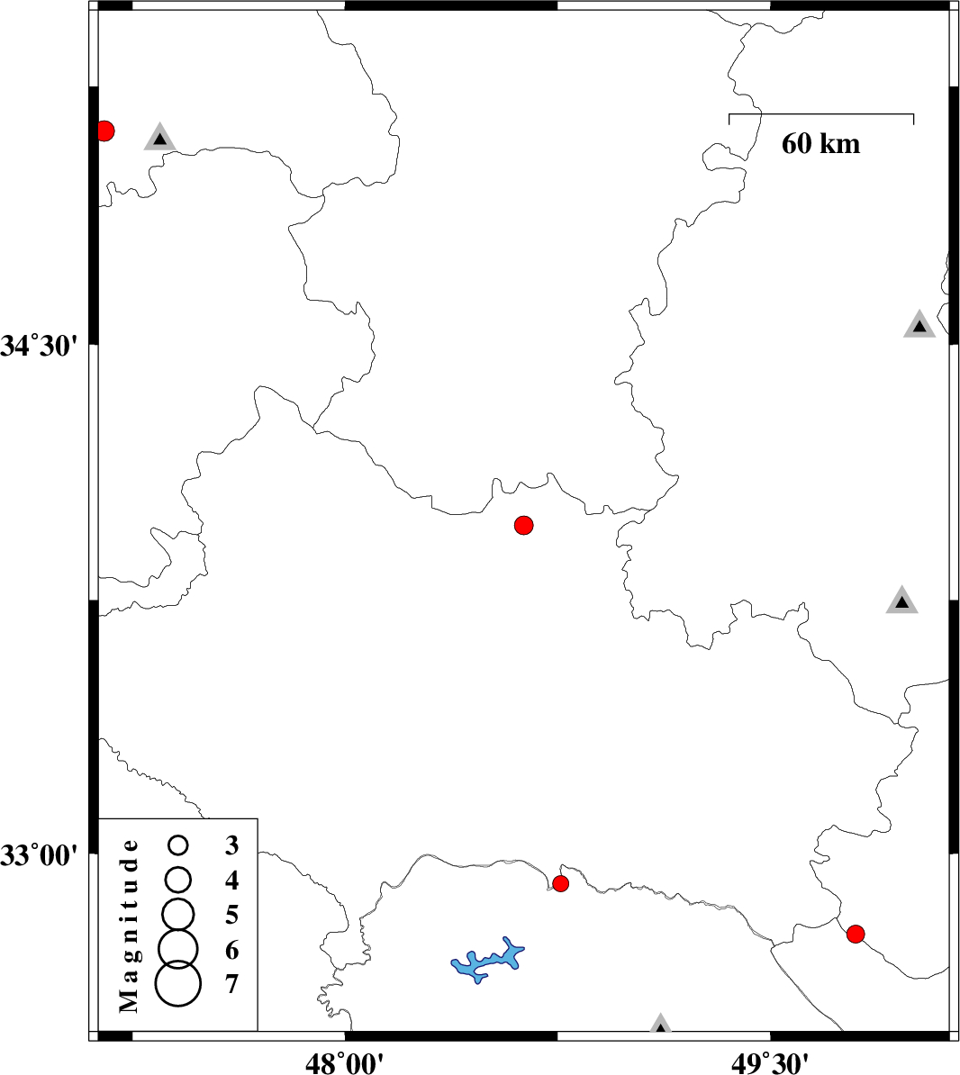 | 2008/01/22 | 23:29:50.2 | 02:59:50.2 | 33.97 | 48.63 | 15 | ML:2.9 | 14 km West of Borujerd, Lorestan Province | ||