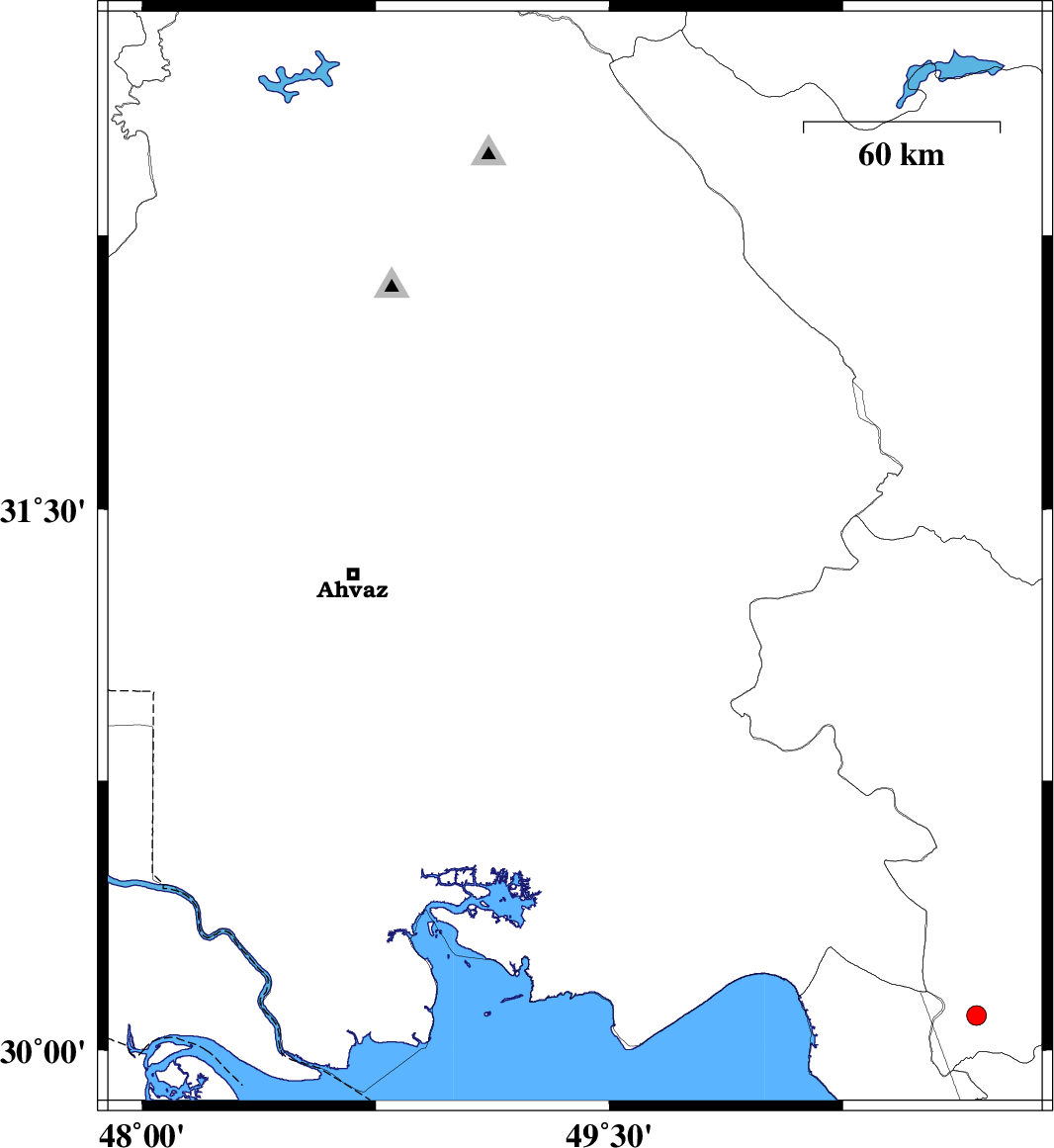 | 2008/01/25 | 11:26:27.2 | 14:56:27.2 | 31.36 | 49.39 | 40 | ML:3.2 | 23 km West of Ramhormoz, Khoozestan Province | ||