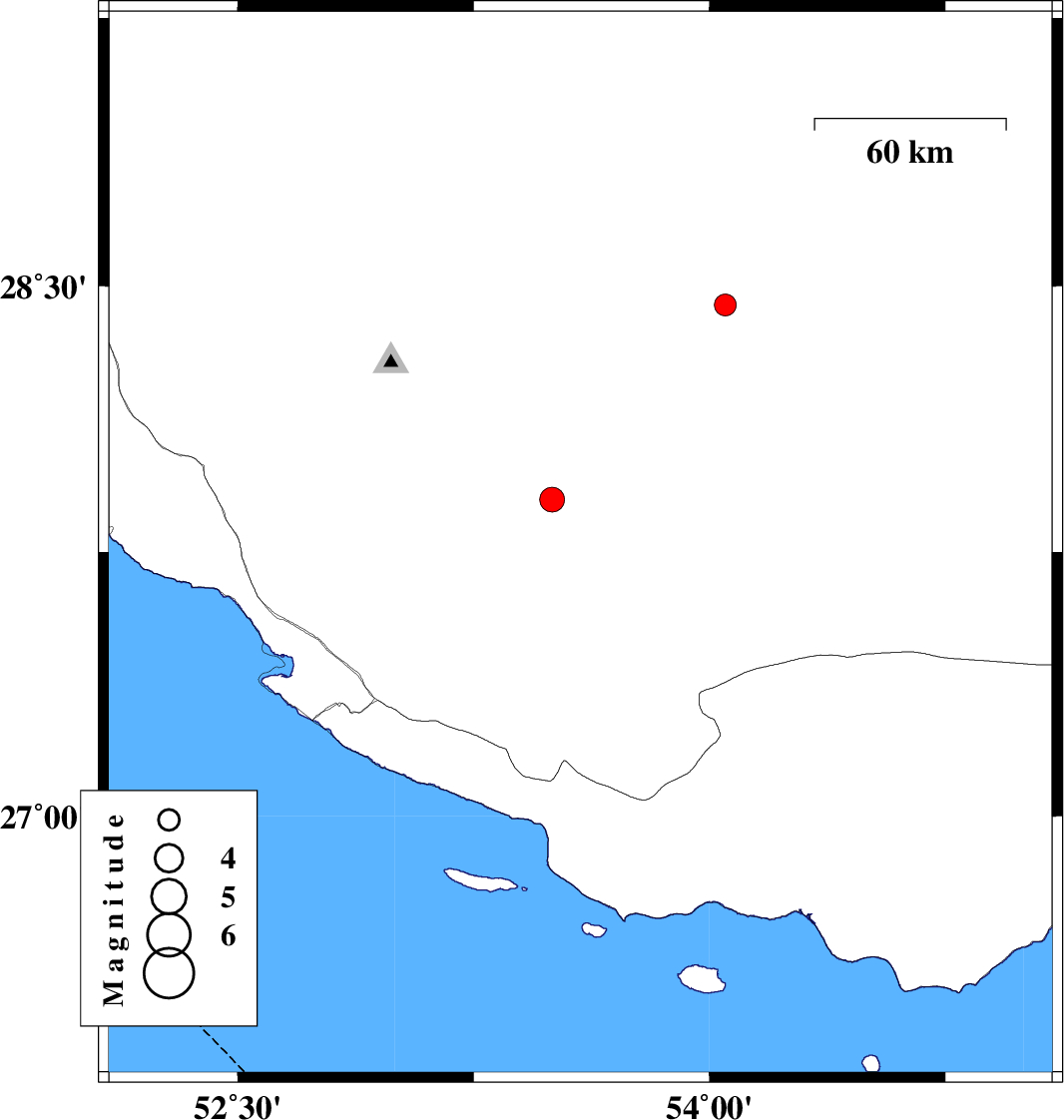 | 2008/01/30 | 09:34:27.8 | 13:04:27.8 | 28.32 | 54.14 | 14 | ML:3.1 | 59 km South-East of Jahrom, Fars Province |