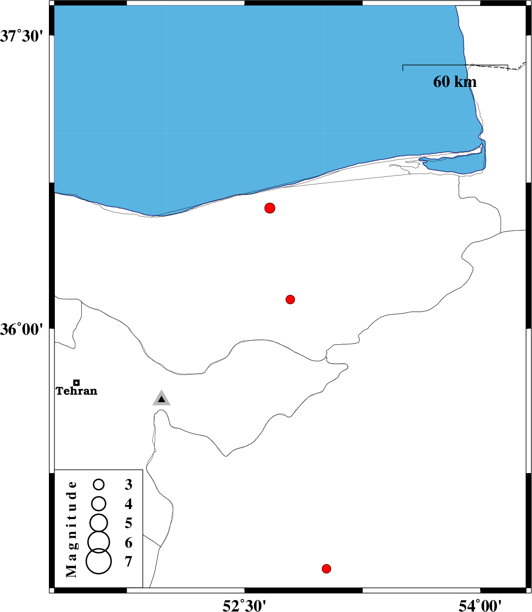 | 2008/02/03 | 13:16:19.7 | 16:46:19.7 | 36.62 | 52.66 | 15 | ML:2.9 | 8 km Babolsar, Mazandaran Province | ||