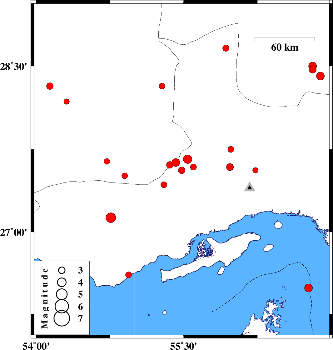 2008/02/11 14:03:46.2 17:33:46.2 27.6655.5414 ML:4 80 km South-West of Hajiabad, Hormozgan Province
