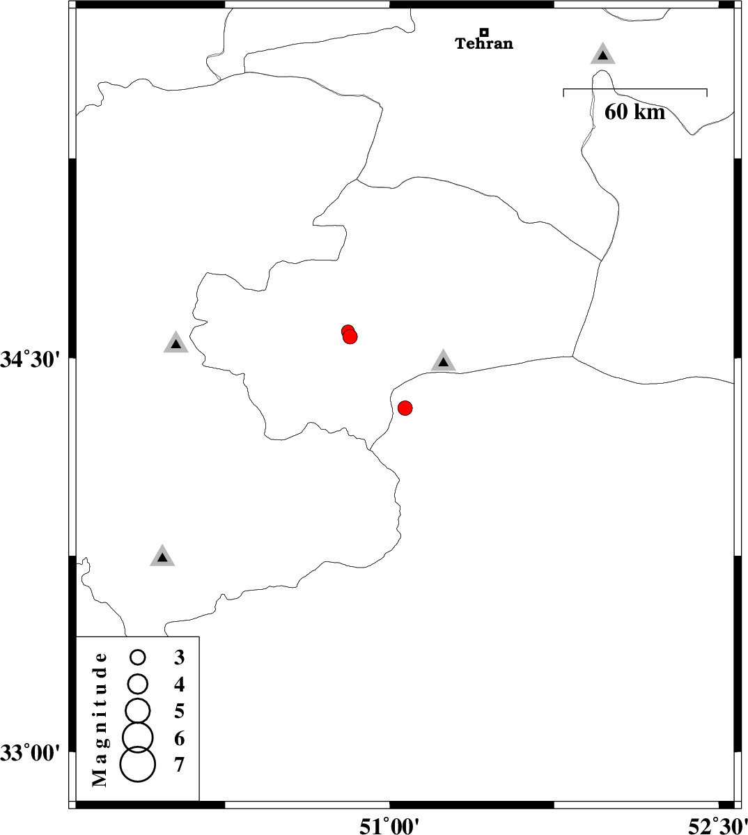 | 2008/01/24 | 22:53:46.2 | 02:23:46.2 | 34.58 | 50.82 | 14 | ML:3 | 9 km Qom, Qom Province | ||