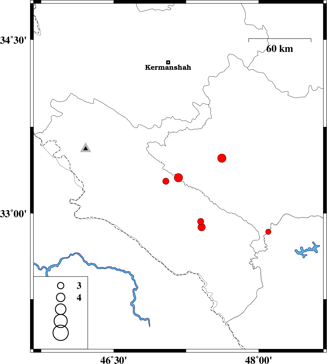 2008/03/17 22:05:36.7 01:35:36.7 32.9347.418 ML:2.9 6 km Abdanan, Ilam Province
