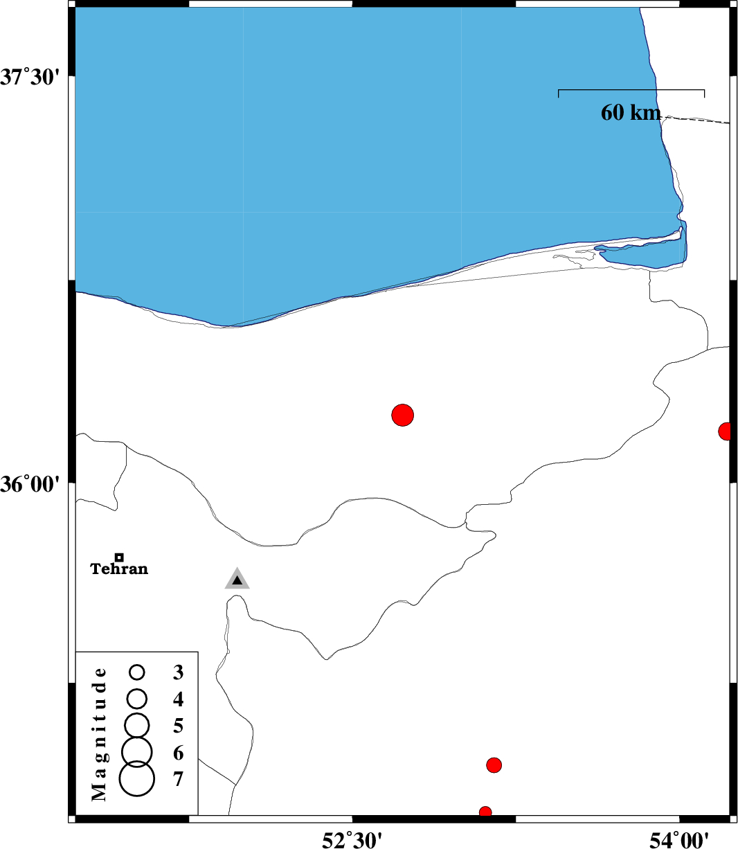| 2008/03/06 | 03:17:44.8 | 06:47:44.8 | 34.94 | 53.15 | 15 | ML:3.1 | 73 km South-West of Semnan, Semnan Province |