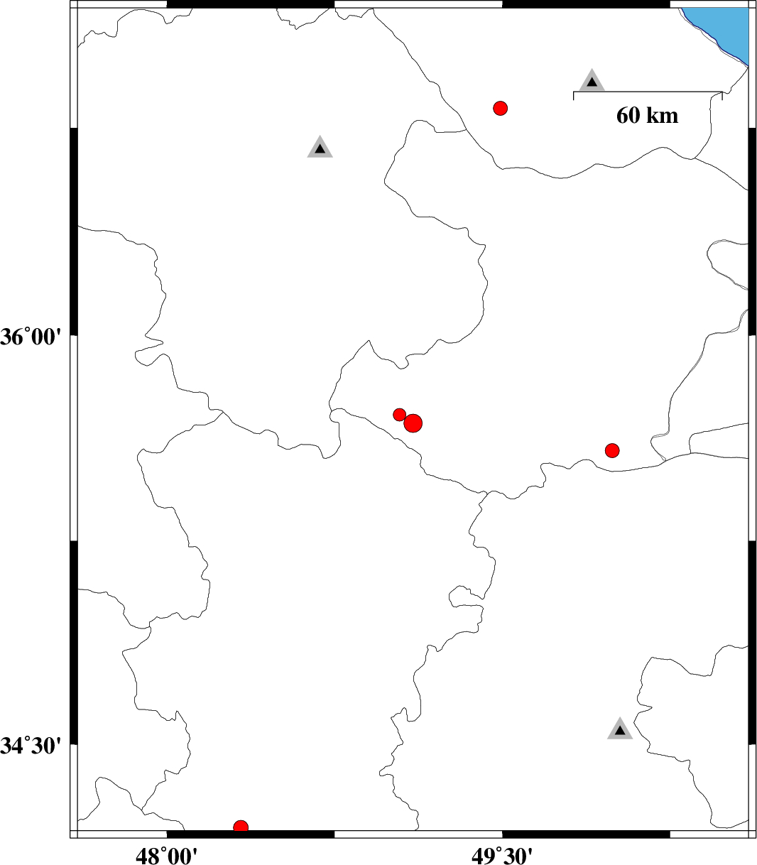 | 2008/03/05 | 15:14:00.4 | 18:44:00.4 | 35.71 | 49.04 | 15 | ML:2.5 | 36 km North of Razan, Hamedan Province |