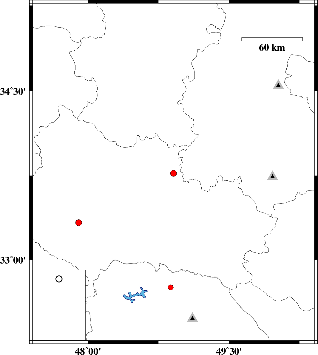 | 2008/04/22 | 03:20:48.9 | 07:50:48.9 | 33.33 | 47.9 | 14 | ML:2.9 | 26 km North-East of Pol-e dokhtar, Lorestan Province | ||
