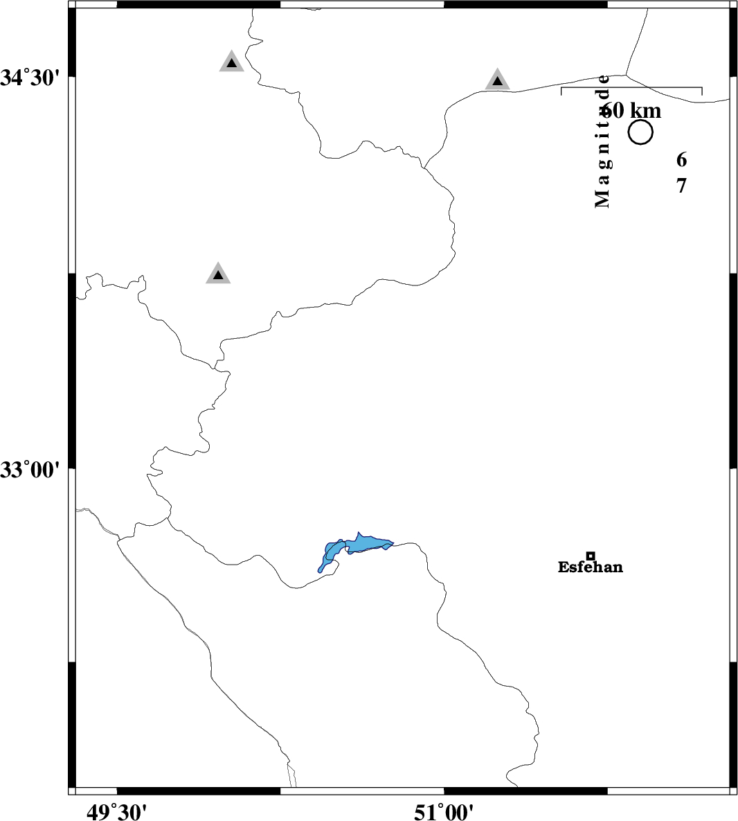 | 2008/04/21 | 01:52:12.4 | 06:22:12.4 | 33.29 | 50.96 | 14 | ML:3.4 | 60 km East of Khvansar, Esfahan Province | ||