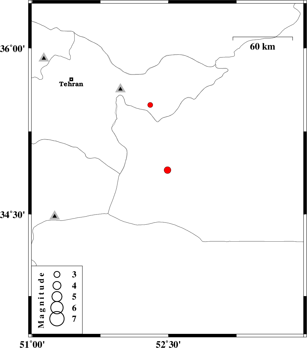 2008/05/08 | 15:07:42.3 | 19:37:42.3 | 34.9 | 52.49 | 17 | ML:3.4 | 37 km South-East of Garmsar, Semnan Province | ||