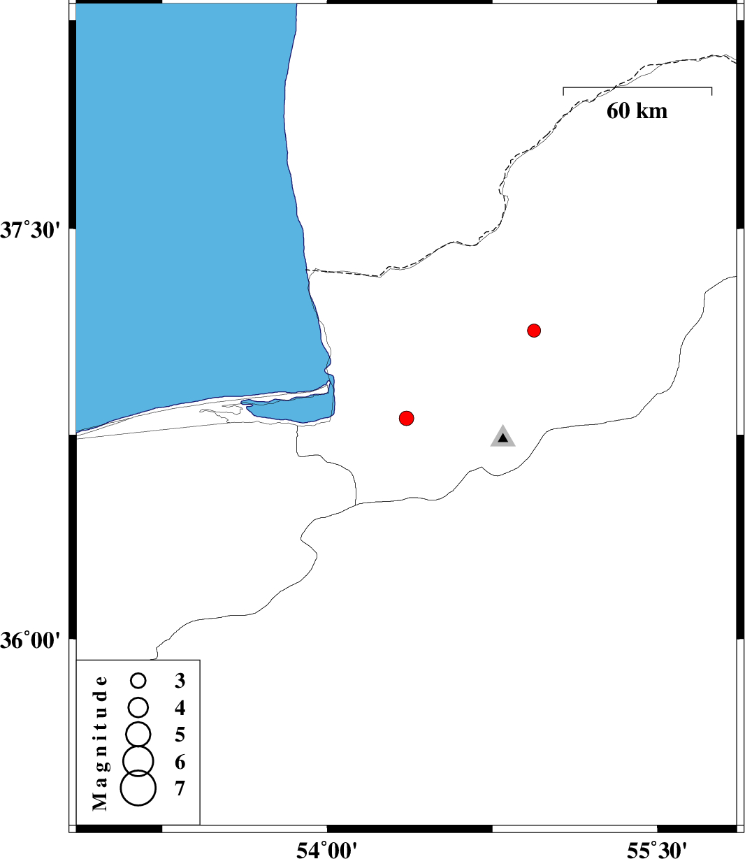 | 2008/05/11 | 06:59:38.5 | 11:29:38.5 | 36.81 | 54.36 | 14 | ML:3 | 7 km Gorgan, Golestan Province | ||