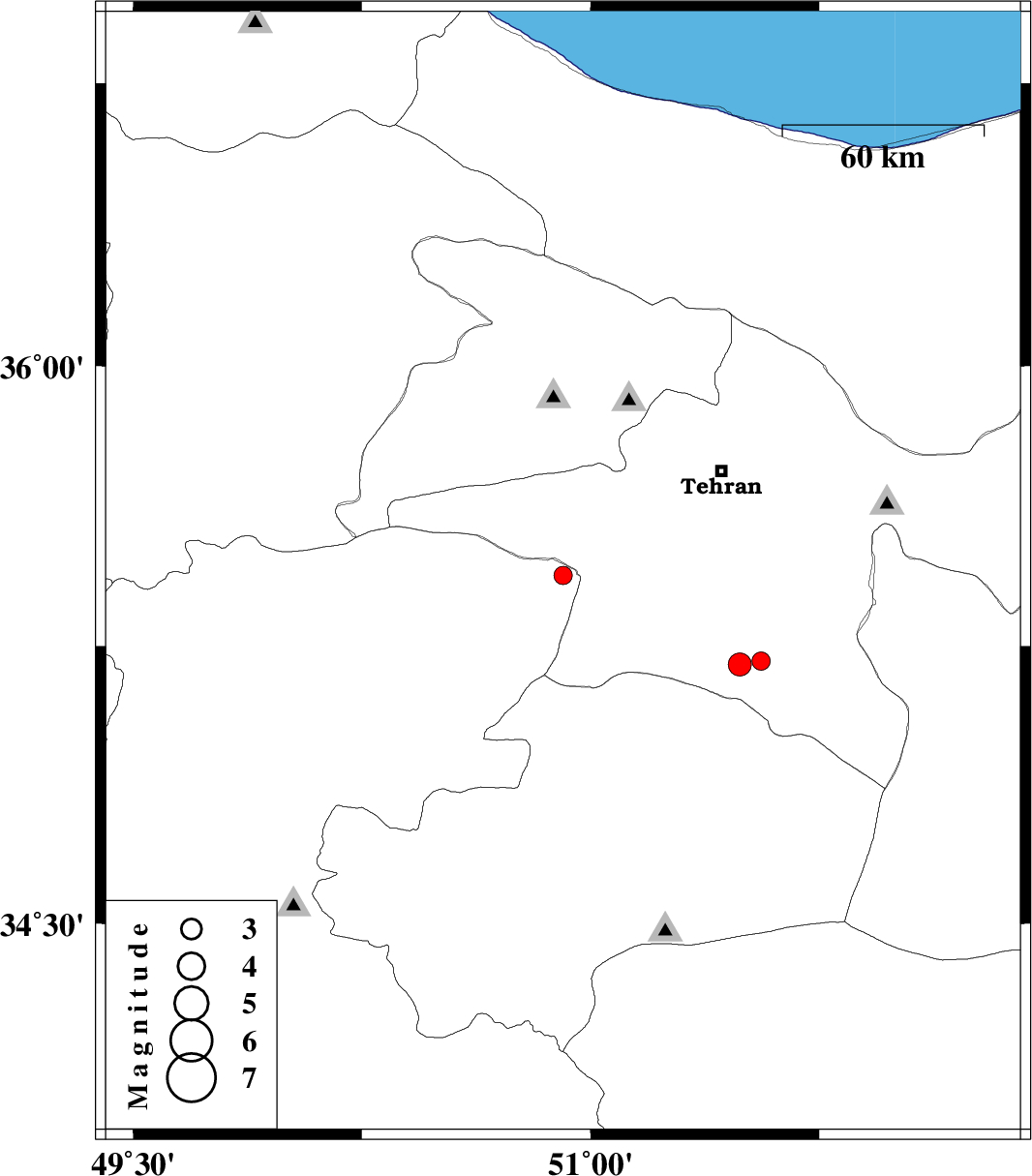 2008/05/31 | 04:42:19.3 | 09:12:19.3 | 35.44 | 50.91 | 46 | ML:2.7 | 16 km West of Robatkarim, Tehran Province | ||