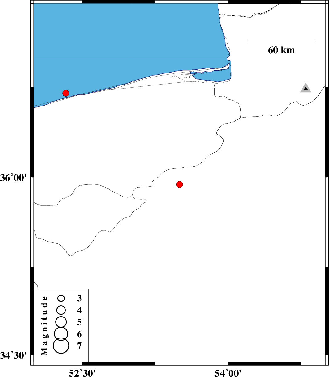 2008/06/09 | 13:38:22.7 | 18:08:22.7 | 36.7 | 52.33 | 28 | ML:2.9 | Caspian Sea, 8 km Mahmud Abad |
