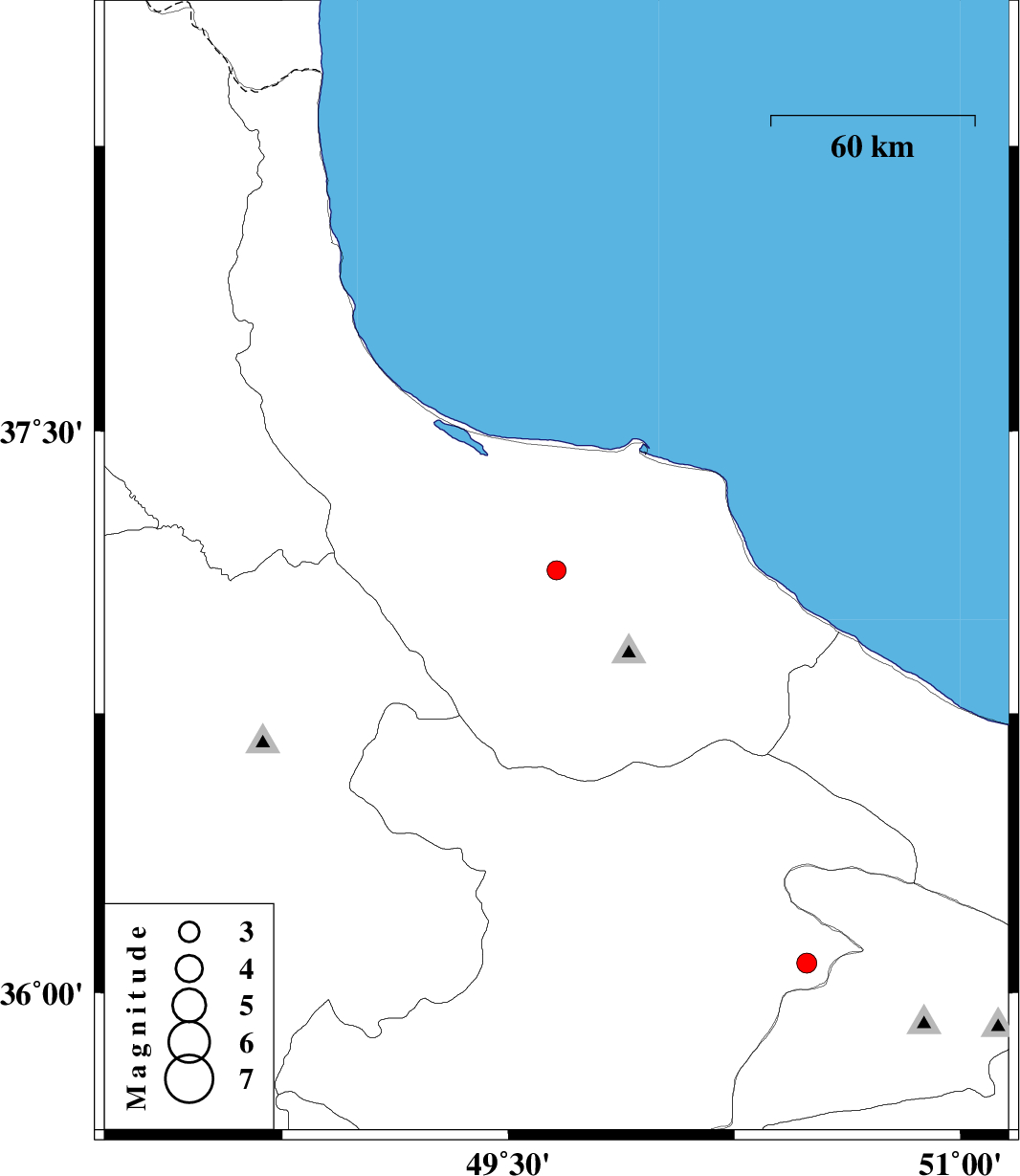 2008/06/19 | 11:47:03.2 | 16:17:03.2 | 37.13 | 49.66 | 23 | ML:2.8 | 17 km South of Rasht, Gilan Province | ||