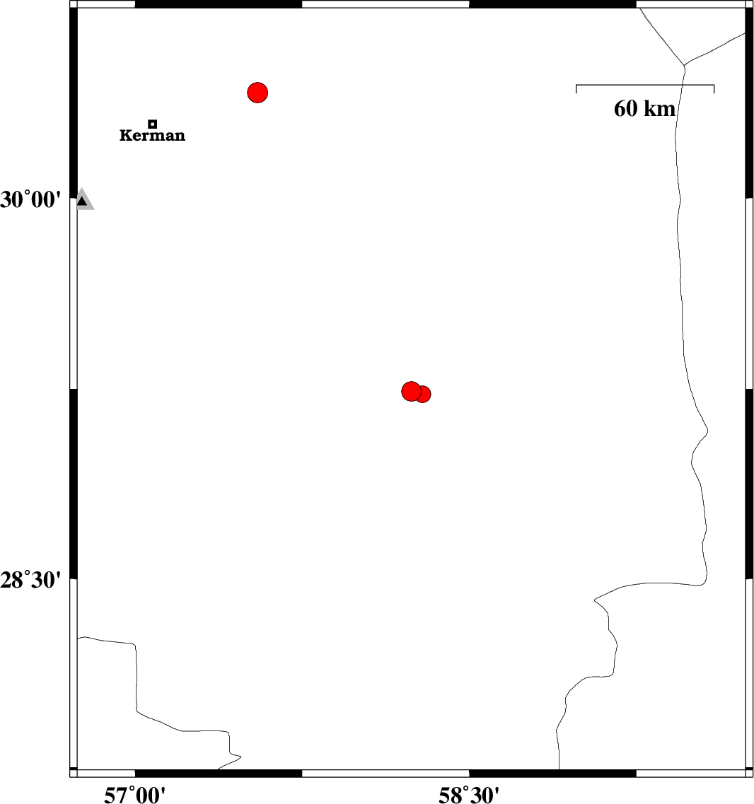 2008/06/18 | 18:13:43.1 | 22:43:43.1 | 29.23 | 58.29 | 15 | ML:3.4 | 15 km North of Bam, Kerman Province |
