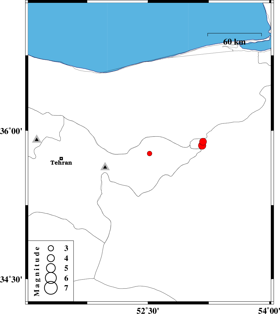 2008/07/16 | 15:56:51.3 | 20:26:51.3 | 35.85 | 53.17 | 14 | ML:4.3 | 31 km South-East of Pol-E-Sefid, Mazandaran Province |