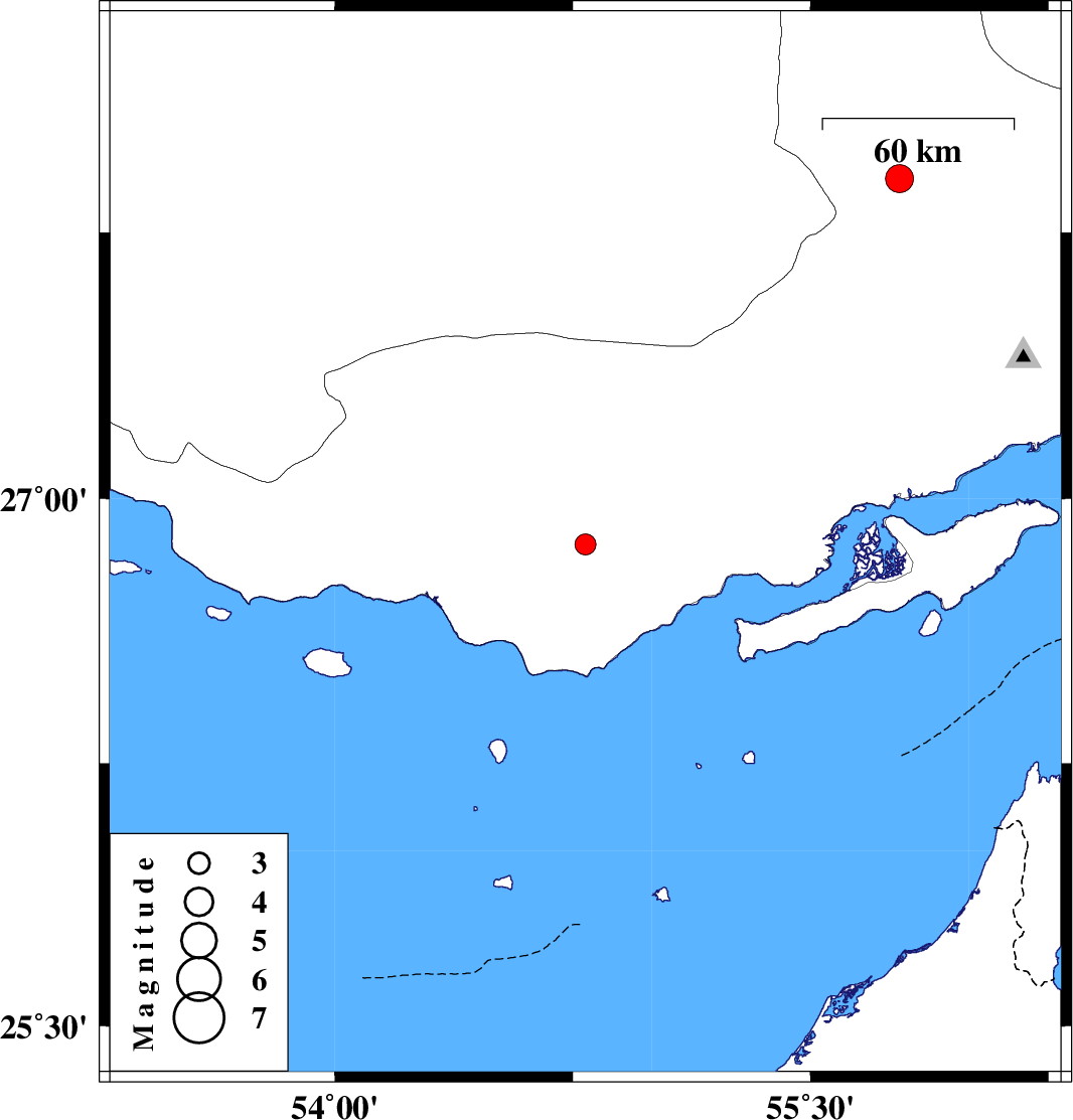 2008/08/18 | 07:21:31.8 | 11:51:31.8 | 26.87 | 54.79 | 14 | ML:3 | 38 km North of Bandar-e lengeh, Hormozgan Province | ||
