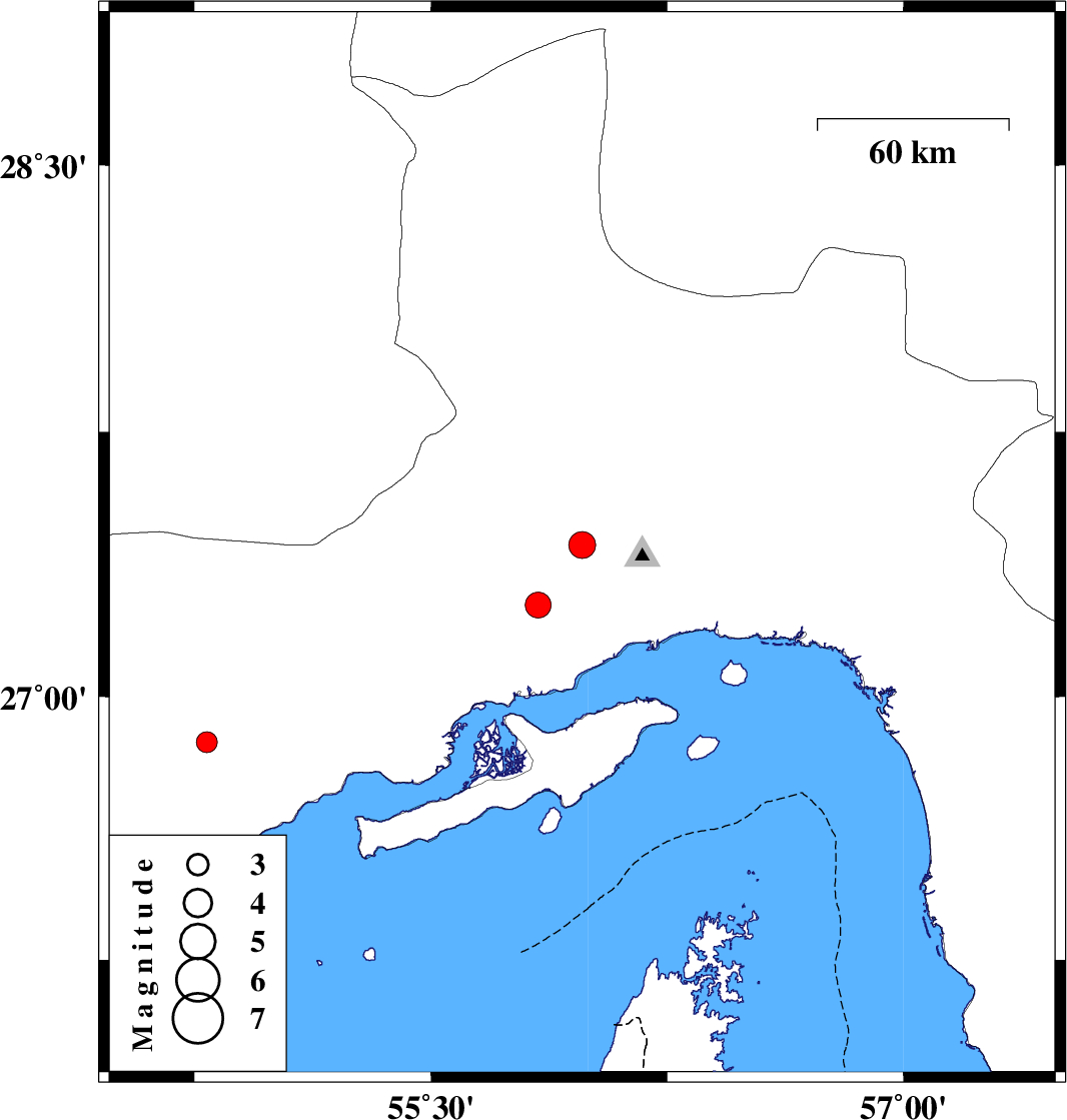 2008/08/24 01:46:23.2 06:16:23.2 27.2655.841 ML:3.6 44 km West of Bandar-e abbas, Hormozgan Province
