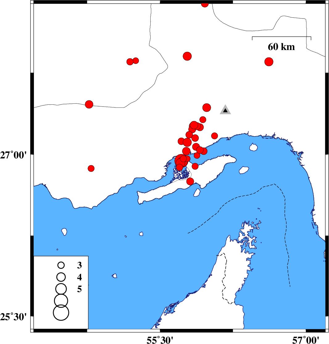2008/09/10 12:00:21.1 16:30:21.1 27.0355.951 ML:3.3 Persian Gulf, 32 km West of Qeshm