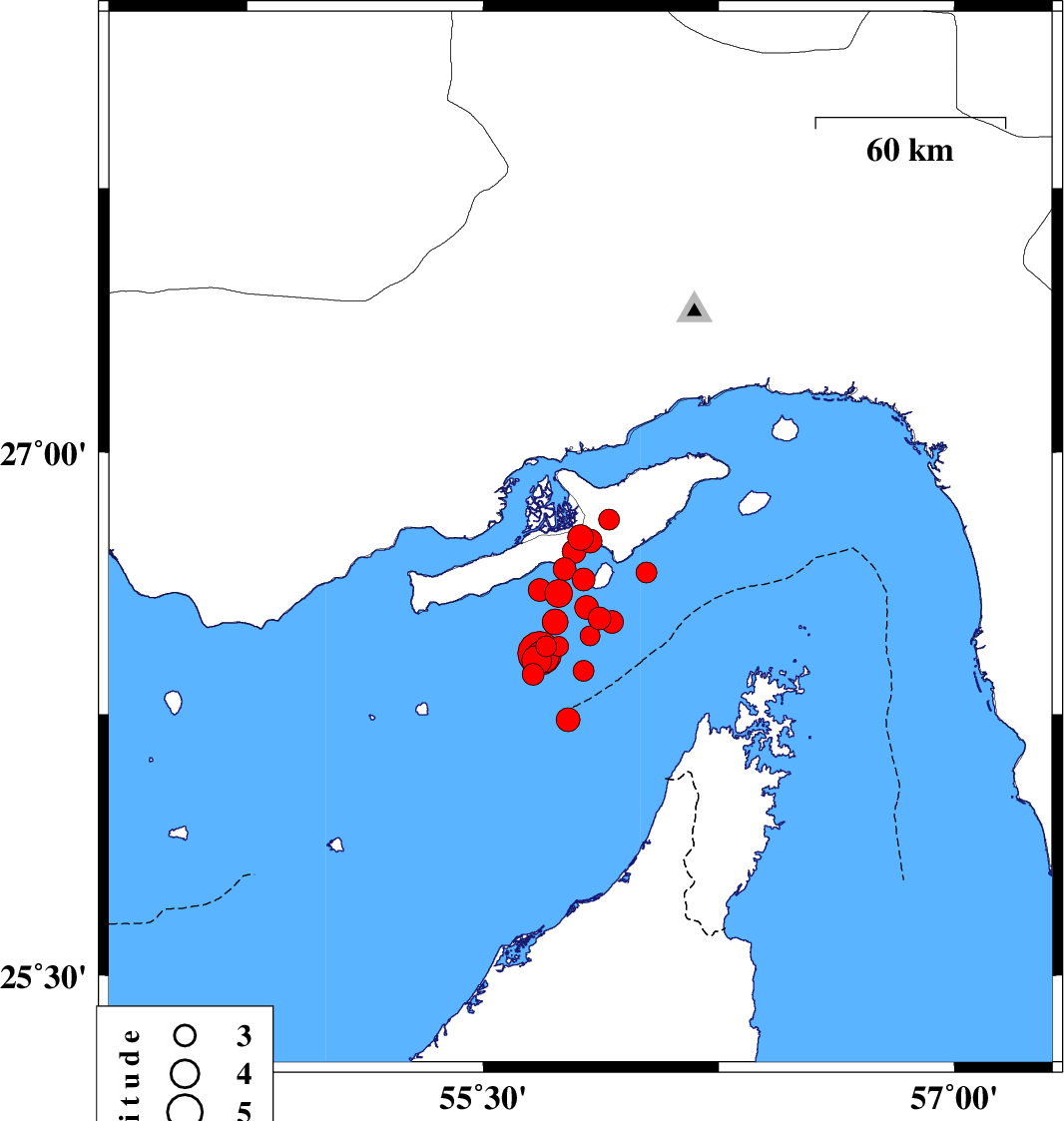 2008/09/10 12:00:21.1 16:30:21.1 27.0355.951 ML:3.3 Persian Gulf, 32 km West of Qeshm