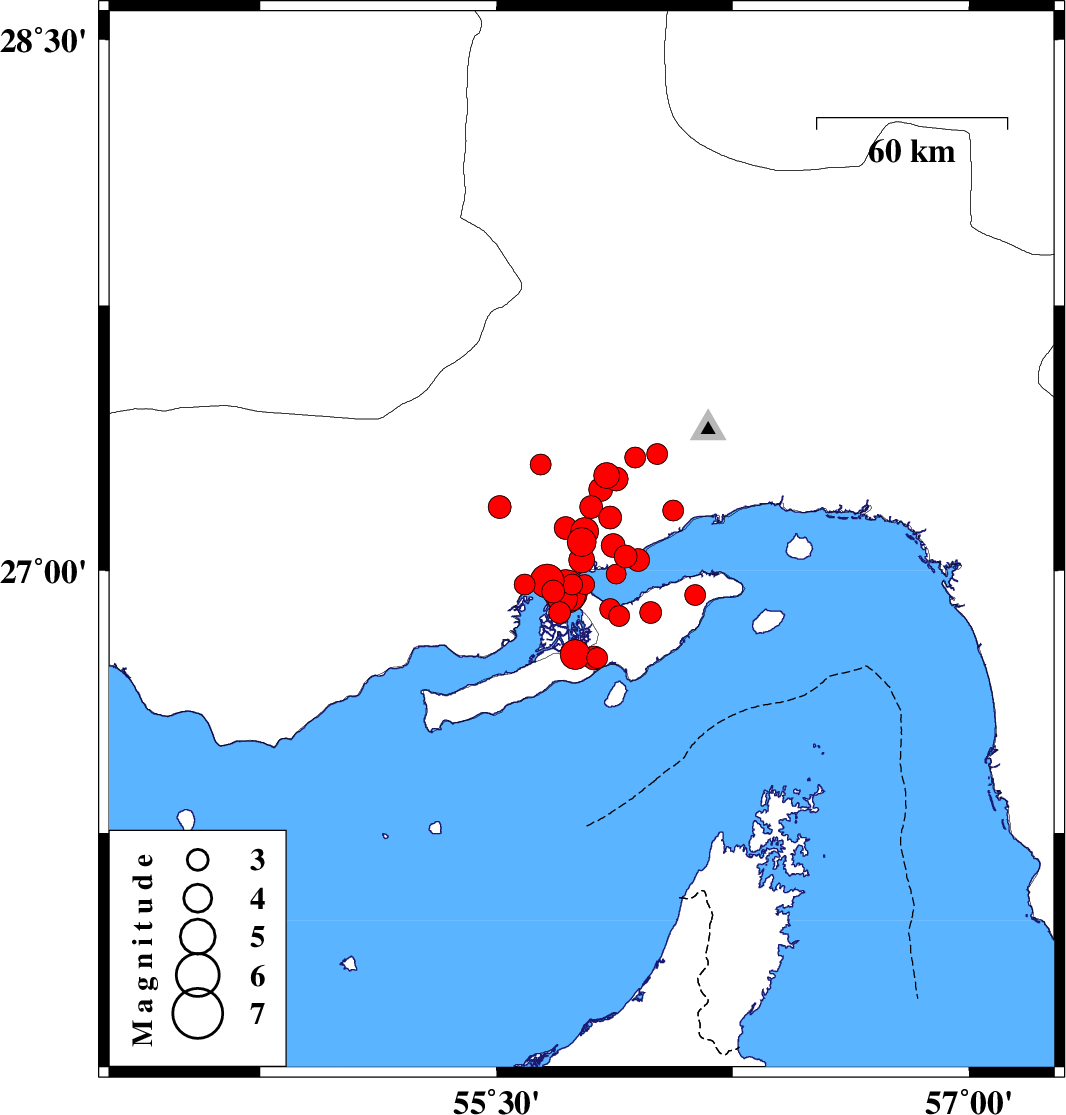 2008/09/10 12:00:21.1 16:30:21.1 27.0355.951 ML:3.3 Persian Gulf, 32 km West of Qeshm