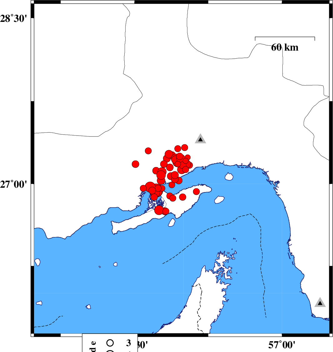 2008/09/17 17:43:50.3 22:13:50.3 27.255.944 ML:4.6 33 km West of Bandar-e abbas, Hormozgan Province