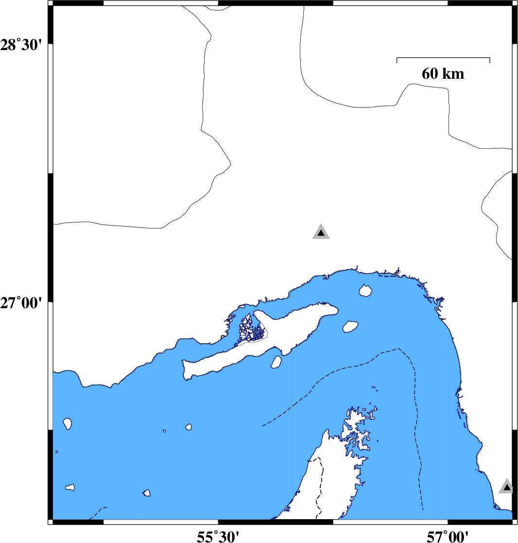 2008/09/10 15:57:57.6 20:27:57.6 26.7555.8110 ML:3.4 Persian Gulf, 50 km South-West of Qeshm