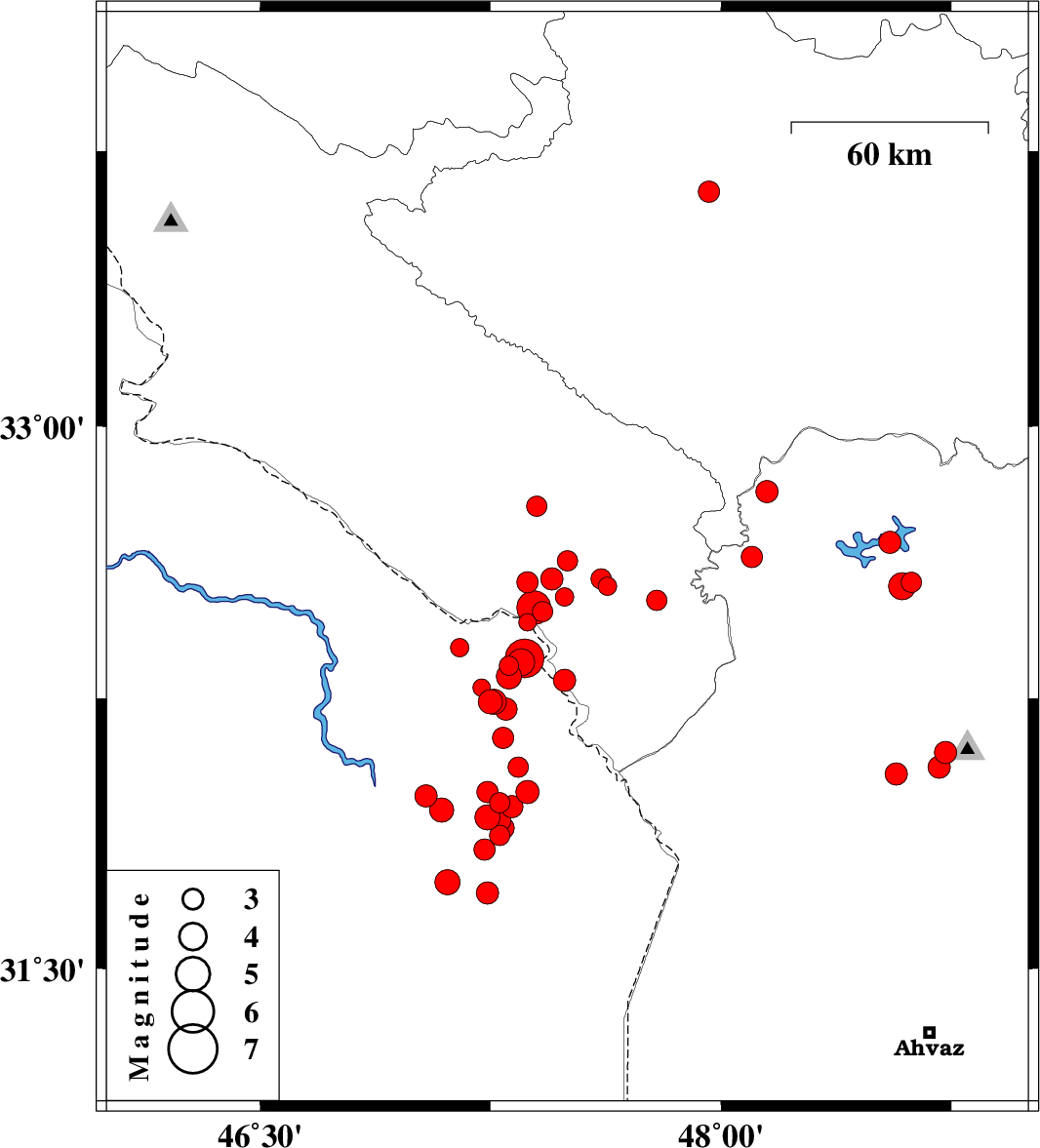 2008/08/27 23:16:17.9 03:46:17.9 31.8347.2337 ML:3.1 95 km North-West of Susangerd, Khoozestan Province