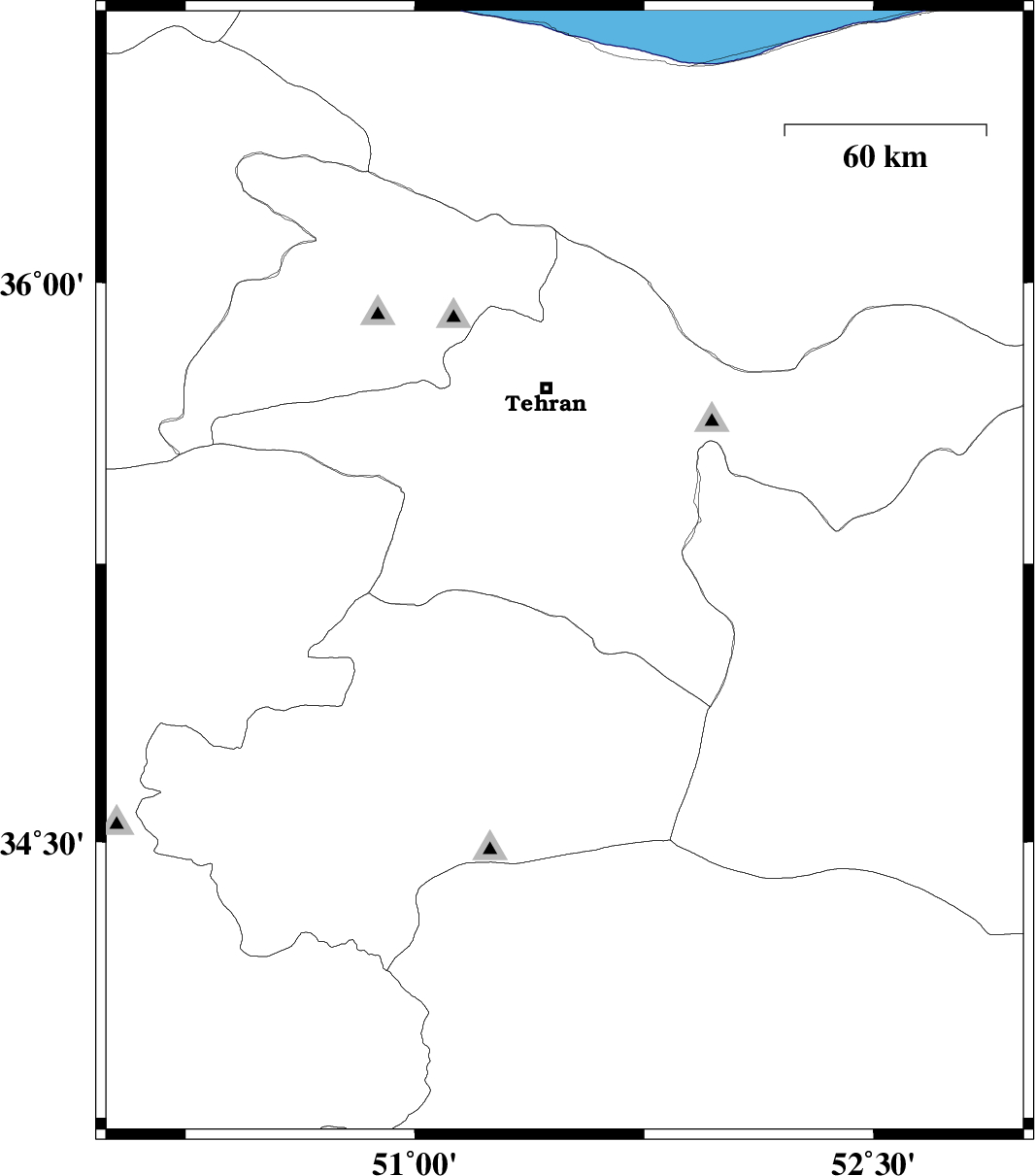 2008/09/16 | 15:03:10.7 | 19:33:10.7 | 34.98 | 52.49 | 14 | ML:2.7 | 29 km South-East of Garmsar, Semnan Province | ||