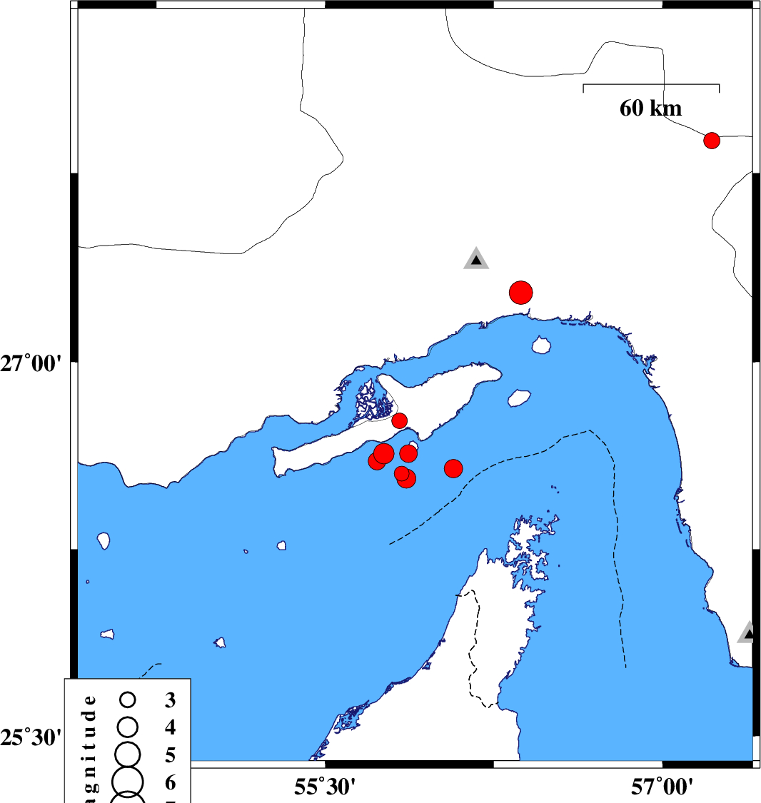 2008/09/26 03:36:32.3 07:06:32.3 26.9855.826 ML:4.1 Persian Gulf, 44 km West of Qeshm