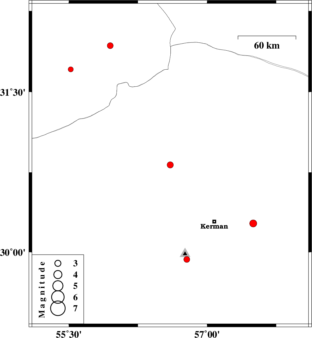 2008/11/25 | 17:30:31.2 | 21:00:31.2 | 30.27 | 57.5 | 14 | ML:3.5 | 40 km East of Kerman, Kerman Province | ||