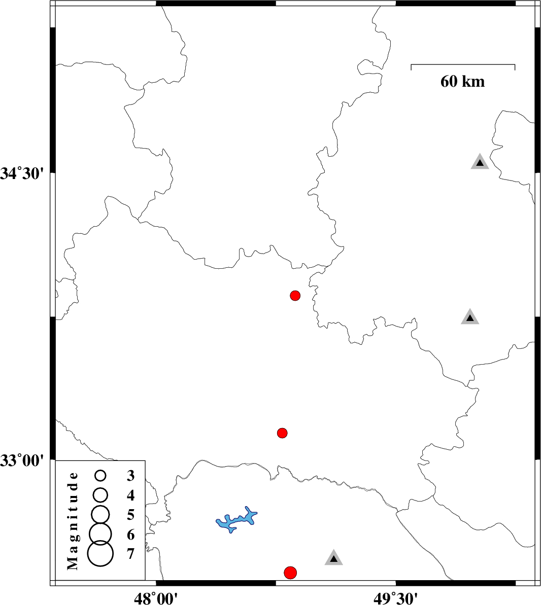 2008/12/01 | 00:39:59.1 | 04:09:59.1 | 33.86 | 48.87 | 15 | ML:2.8 | 10 km East of Borujerd, Lorestan Province | ||