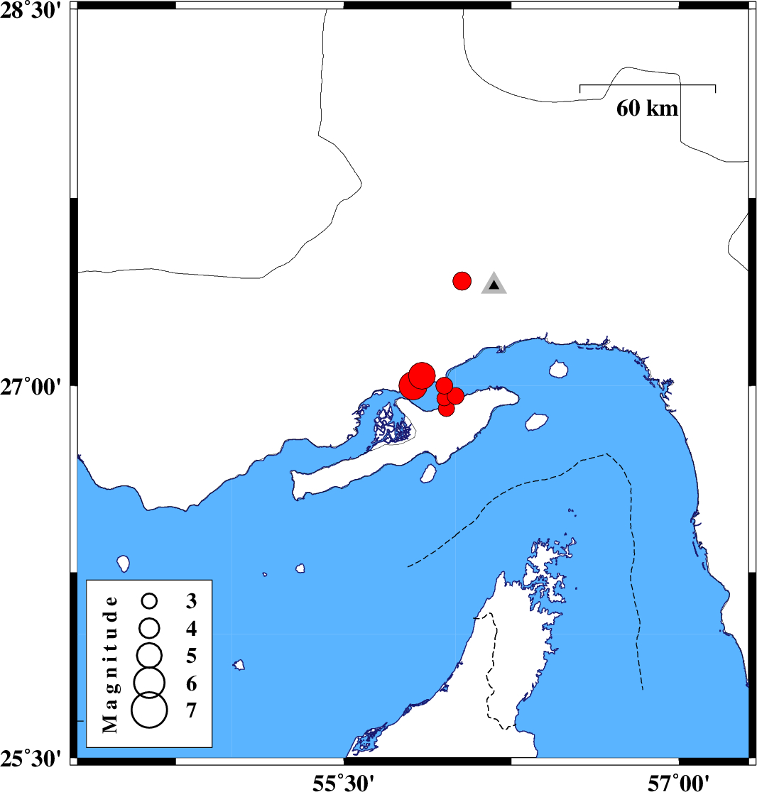 2008/12/07 14:31:24.7 18:01:24.7 26.8755.922 ML:3.3 Persian Gulf, 36 km West of Qeshm