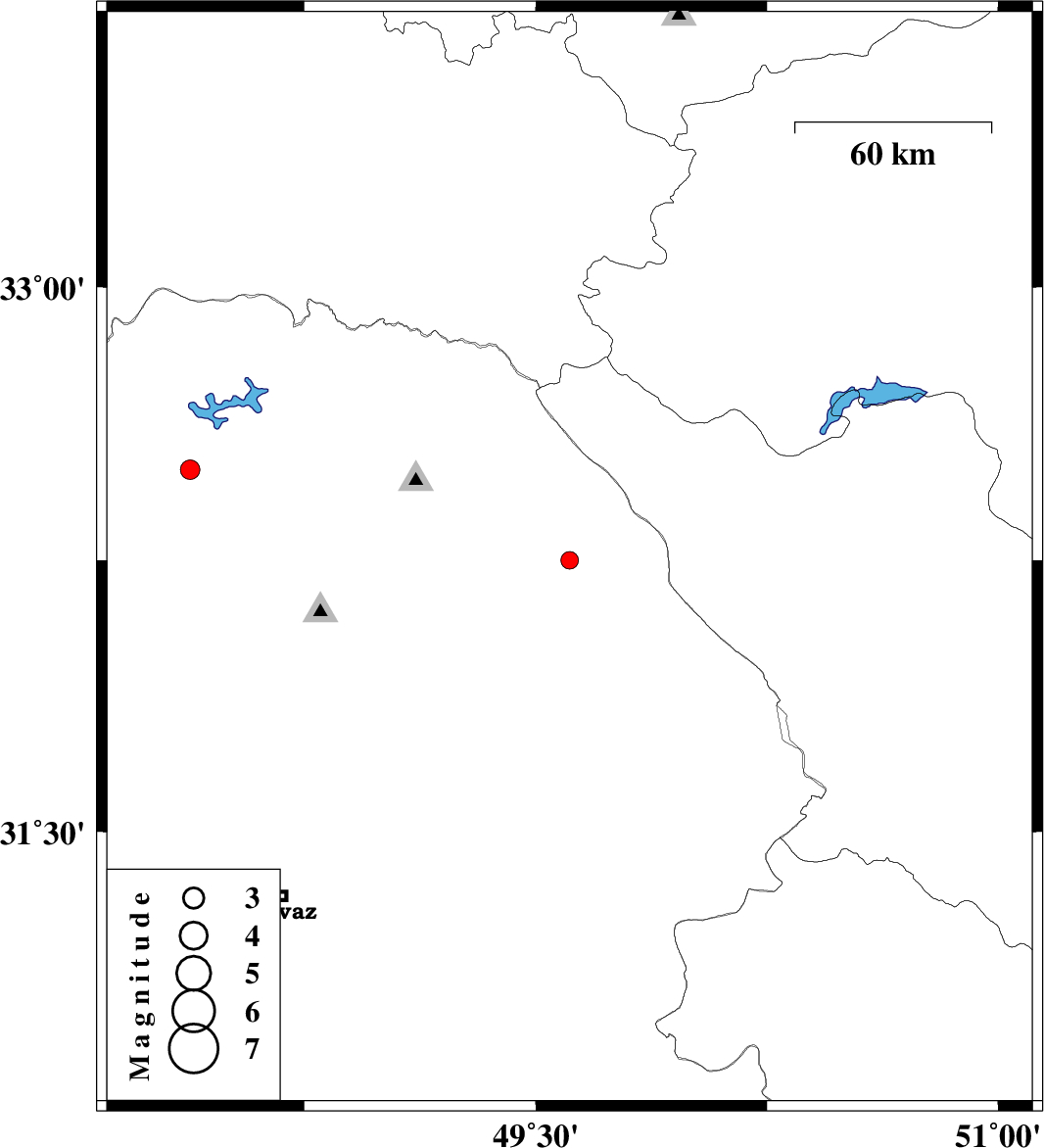 2008/12/14 | 03:48:43.2 | 07:18:43.2 | 32.25 | 49.61 | 14 | ML:2.6 | 45 km North-East of Masjed Soleyman, Khoozestan Province | ||