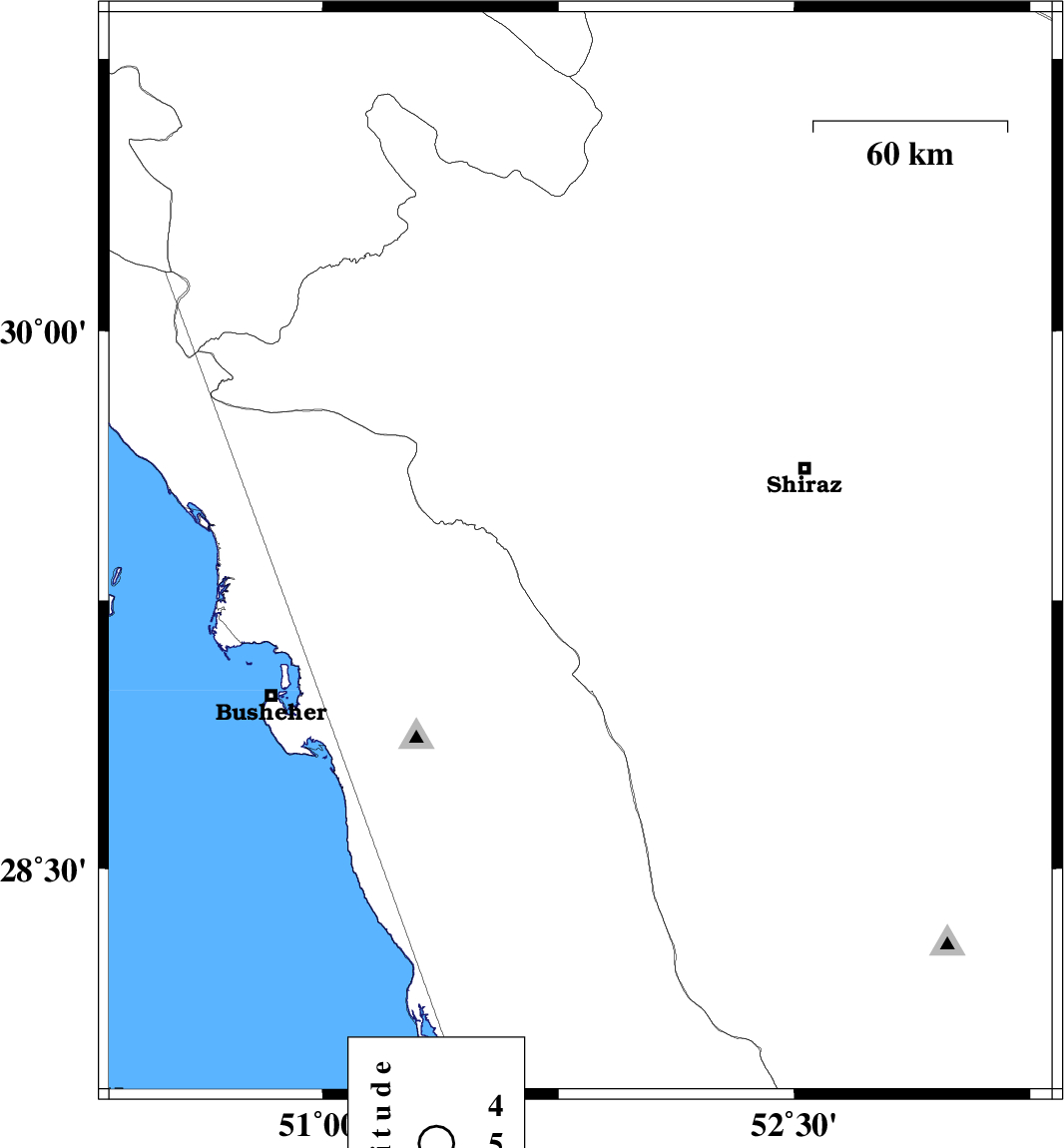 2009/01/29 23:50:32.3 03:20:32.3 29.3851.8218 ML:3 31 km South-East of Kazerun, Fars Province