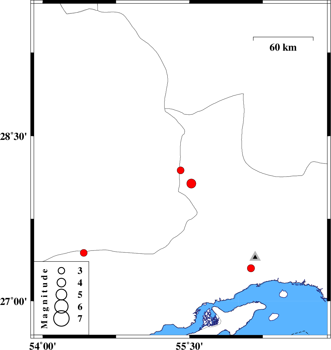 2009/02/22 20:54:01.3 00:24:01.3 28.0755.5214 ML:4.2 45 km South-West of Hajiabad, Hormozgan Province