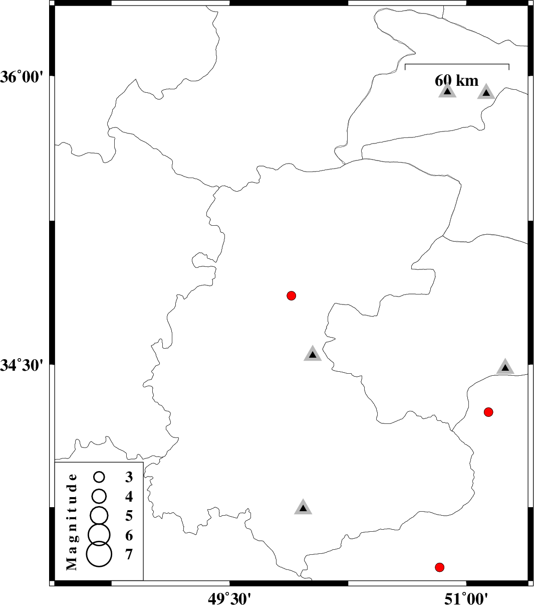 2009/03/23 | 15:38:20.4 | 20:08:20.4 | 34.86 | 49.89 | 45 | ML:2.5 | 22 km North-West of Tafresh, Markazi Province | ||