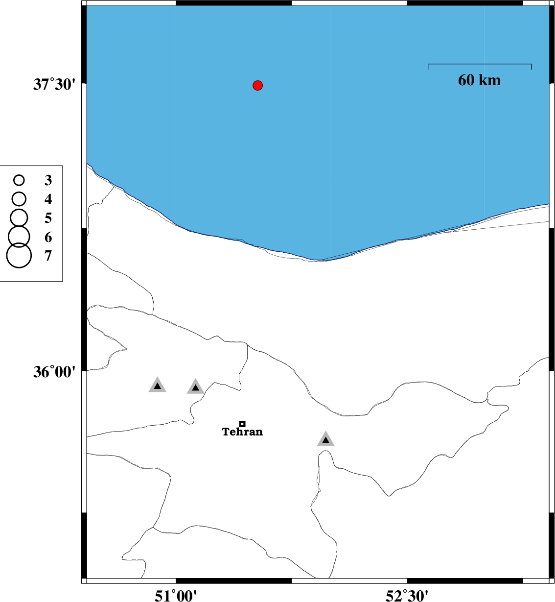 2009/04/04 | 10:18:08.8 | 14:48:08.8 | 36.33 | 51.88 | 14 | ML:3.3 | 30 km South-West of Nur, Mazandaran Province | ||