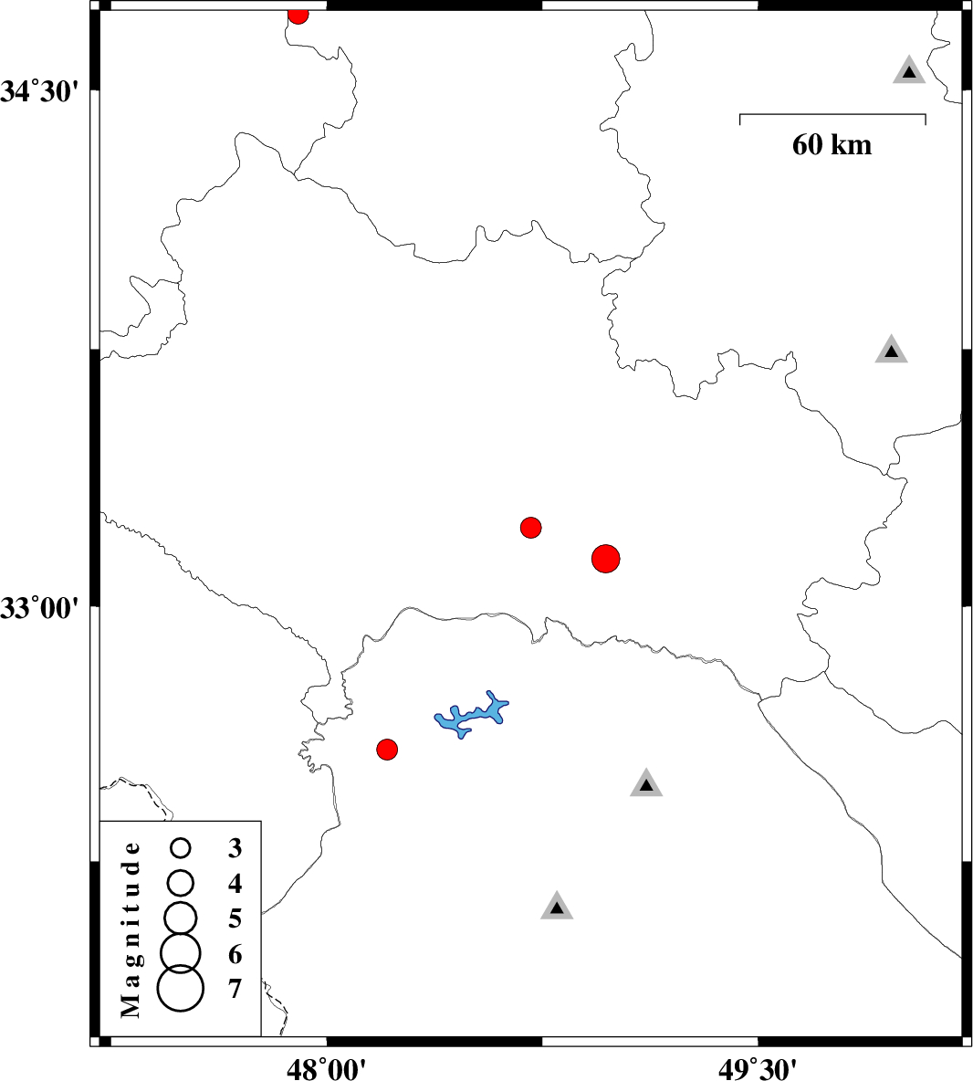 2009/04/28 | 05:44:41.9 | 10:14:41.9 | 33.23 | 48.71 | 15 | ML:3.2 | 42 km South-East of Khorramabad, Lorestan Province | ||