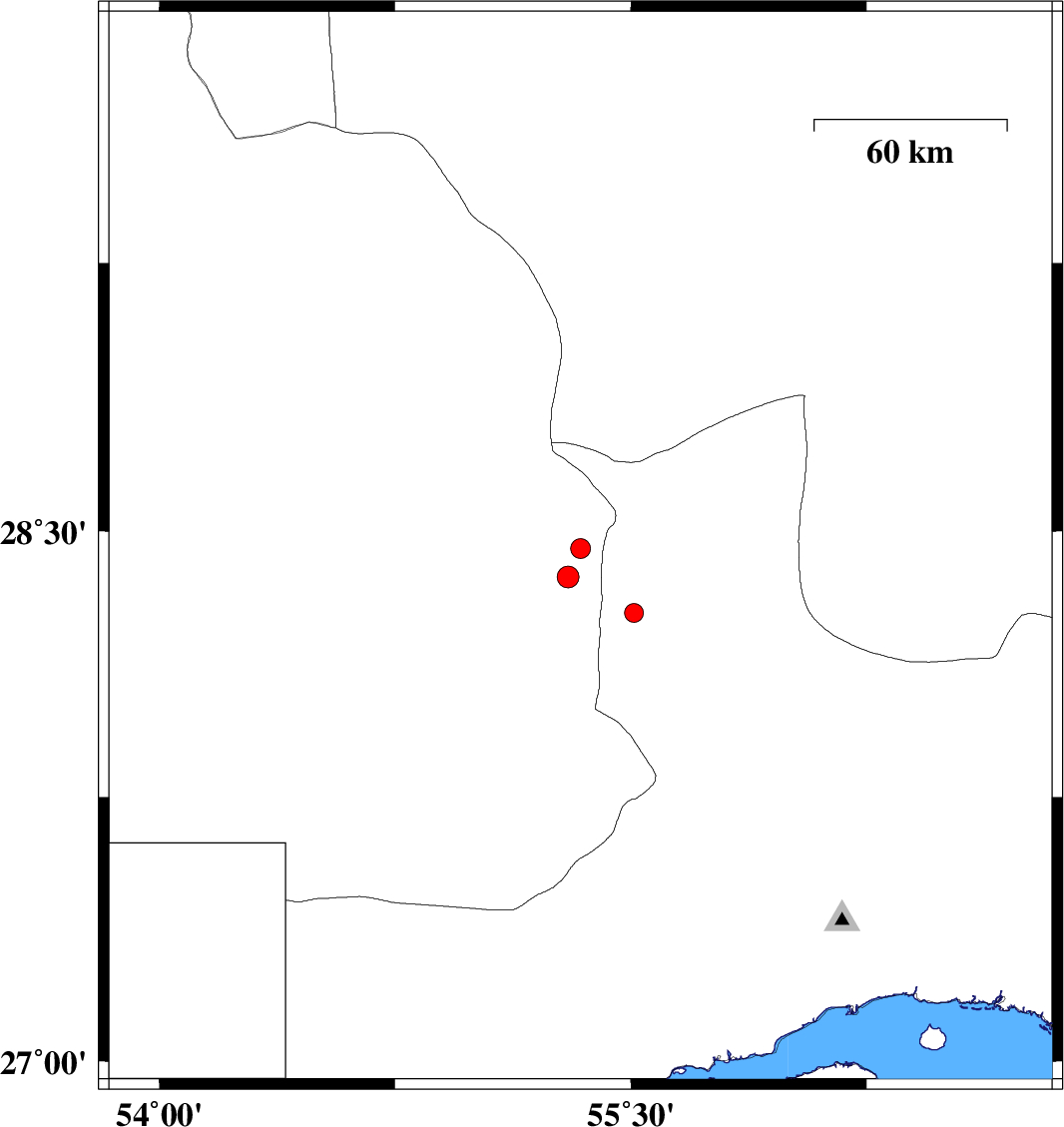 2009/04/30 | 05:37:43.4 | 10:07:43.4 | 28.45 | 55.34 | 18 | ML:2.8 | 56 km North-West of Hajiabad, Hormozgan Province |