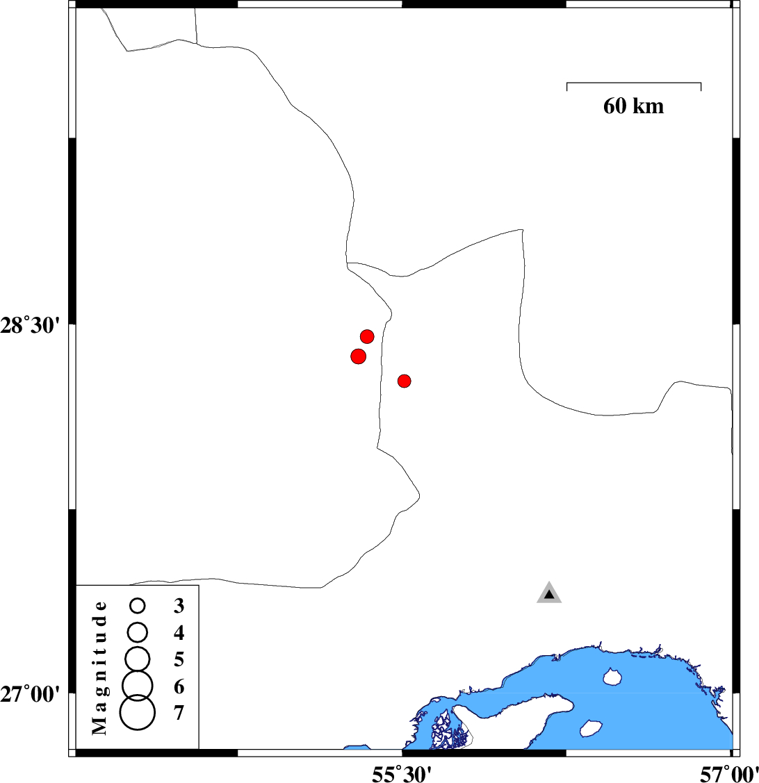 2009/04/30 06:19:43.9 10:49:43.9 28.3755.315 ML:3.1 59 km West of Hajiabad, Hormozgan Province