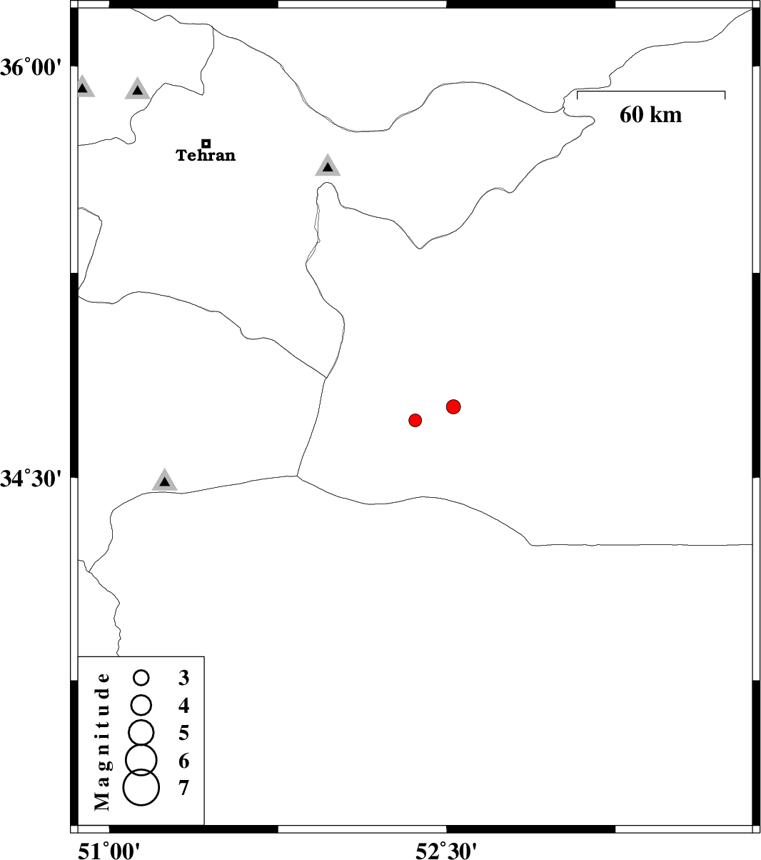 | 2009/05/06 | 12:45:03.8 | 17:15:03.8 | 34.71 | 52.36 | 18 | ML:2.6 | 56 km South of Garmsar, Semnan Province |