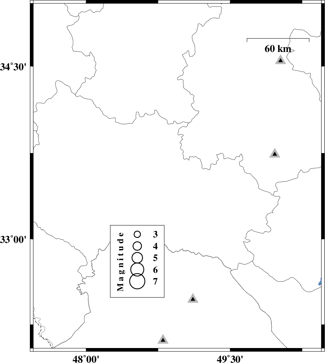 2009/06/13 | 17:12:31.3 | 21:42:31.3 | 33.54 | 48.95 | 15 | ML:2.5 | 12 km West of Dorud, Lorestan Province | ||