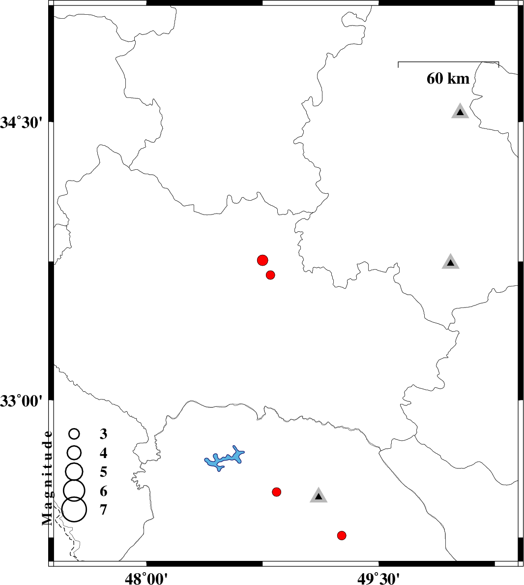 2009/06/13 | 17:12:31.3 | 21:42:31.3 | 33.54 | 48.95 | 15 | ML:2.5 | 12 km West of Dorud, Lorestan Province | ||