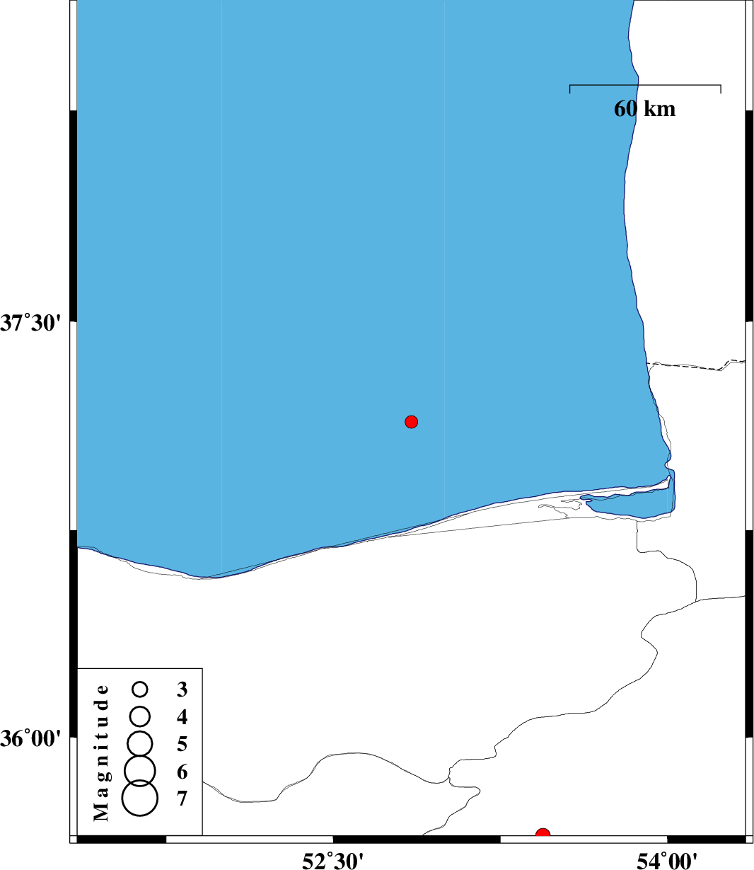 2010/01/05 | 12:15:45.4 | 15:45:45.4 | 37.14 | 52.85 | 14 | ML:2.5 | Caspian Sea, 52 km North-East of Babolsar | ||