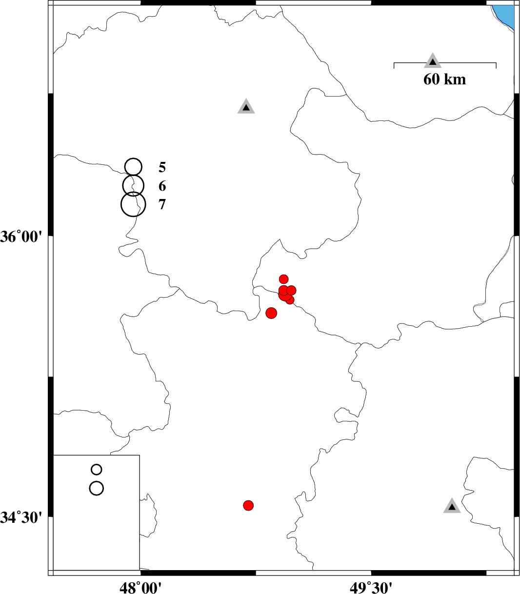 2010/01/10 06:52:23.5 10:22:23.5 35.6948.9415 ML:4 34 km North of Razan, Hamedan Province