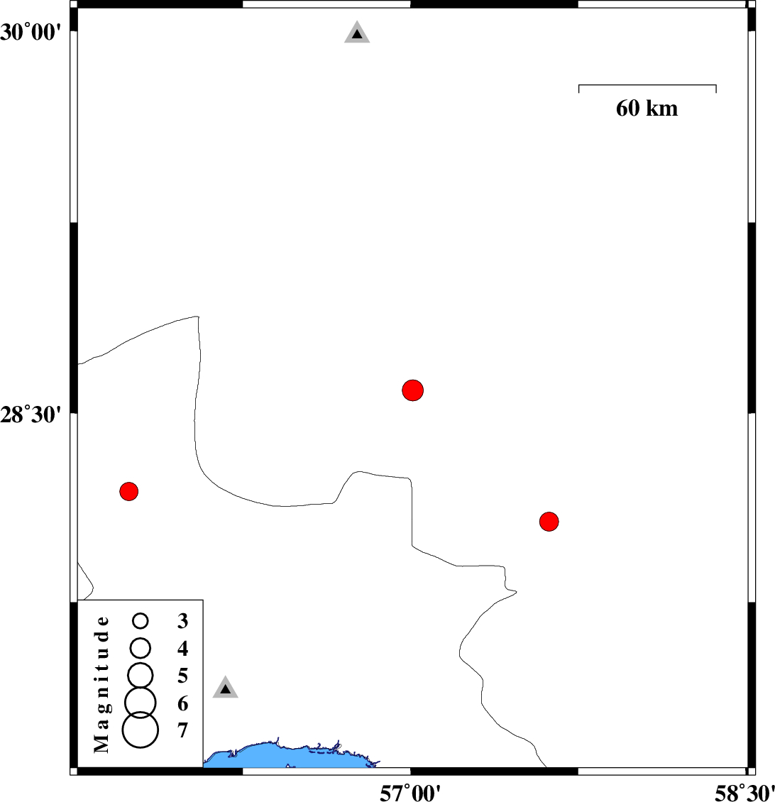 2010/01/29 | 20:50:19.5 | 00:20:19.5 | 28.07 | 57.62 | 15 | ML:3.8 | 14 km North of Kahnuj, Kerman Province | ||