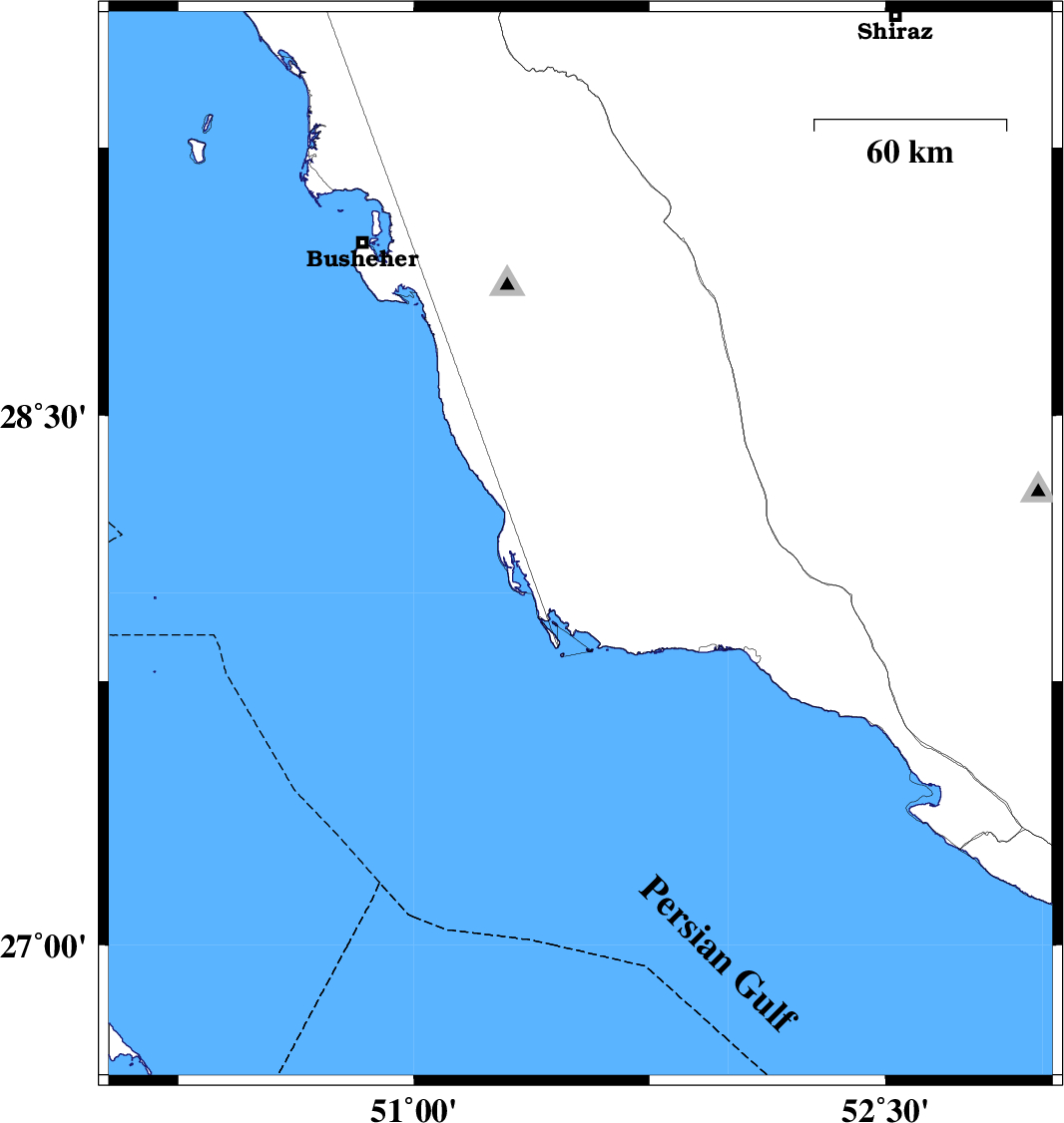 2010/02/04 | 23:40:08.6 | 03:10:08.6 | 27.48 | 52.54 | 20 | ML:3.3 | Persian Gulf, 35 km West of Mehr |